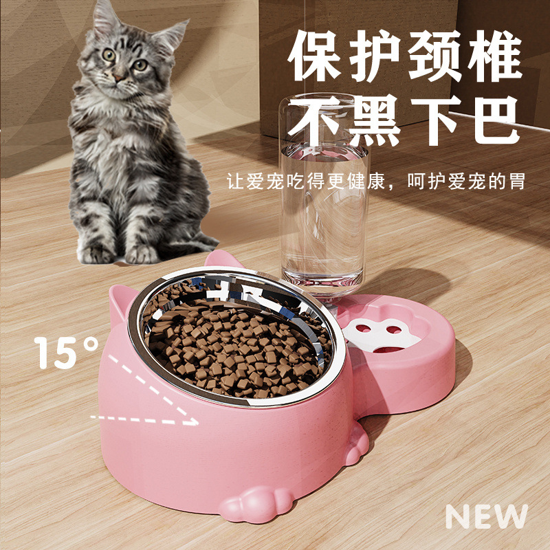 애완 동물 용품 더블 그릇 자동 식수 애완 동물 고양이 사료 개밥 그릇 스테인레스 스틸 세라믹 개 그릇 고양이 그릇 개 그릇 고양이 그릇
