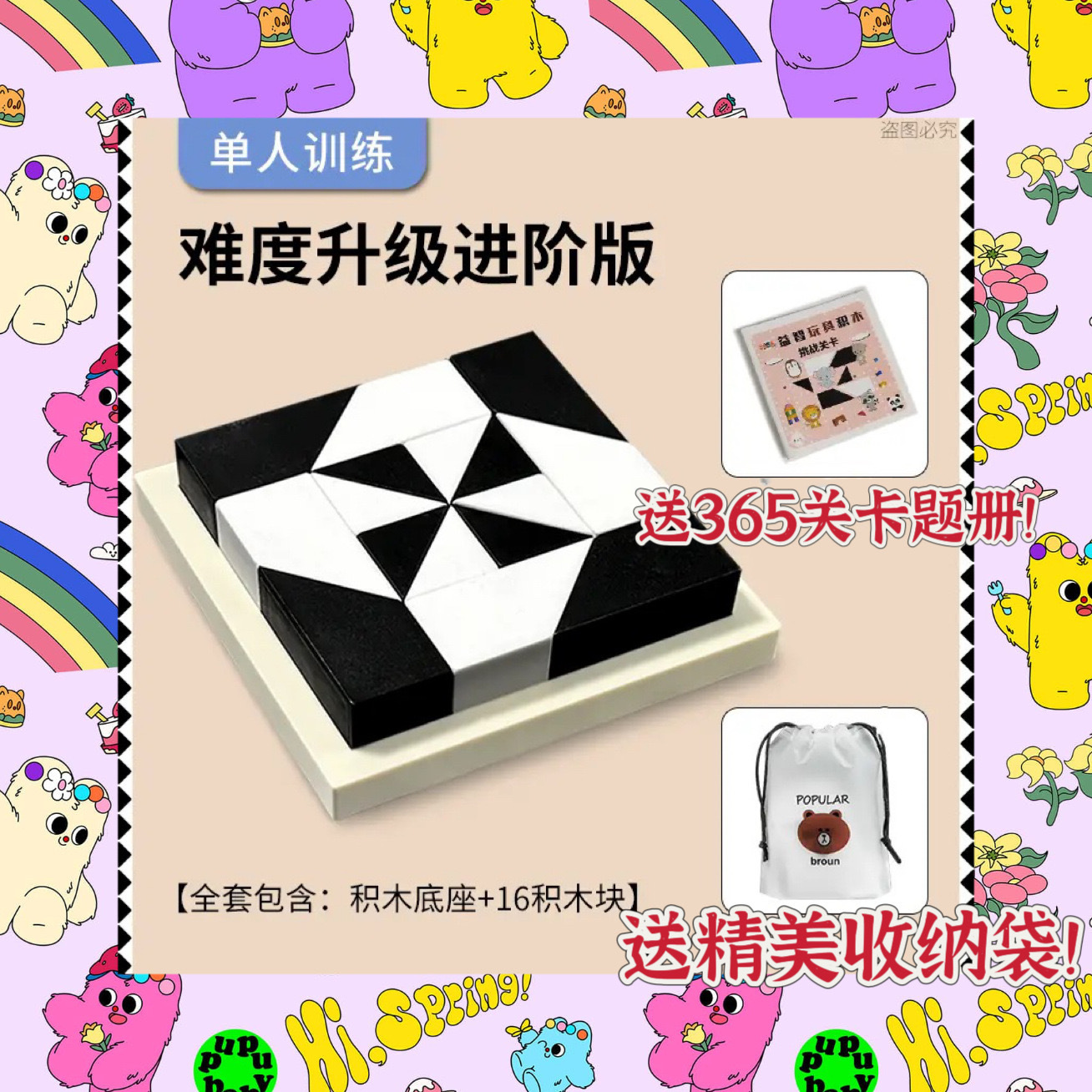 • 흑백 빌딩 블록 16개 + 문제 카드 365개 + 보관 가방 [색상 상자]