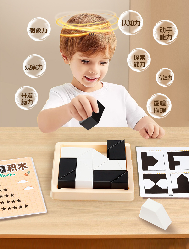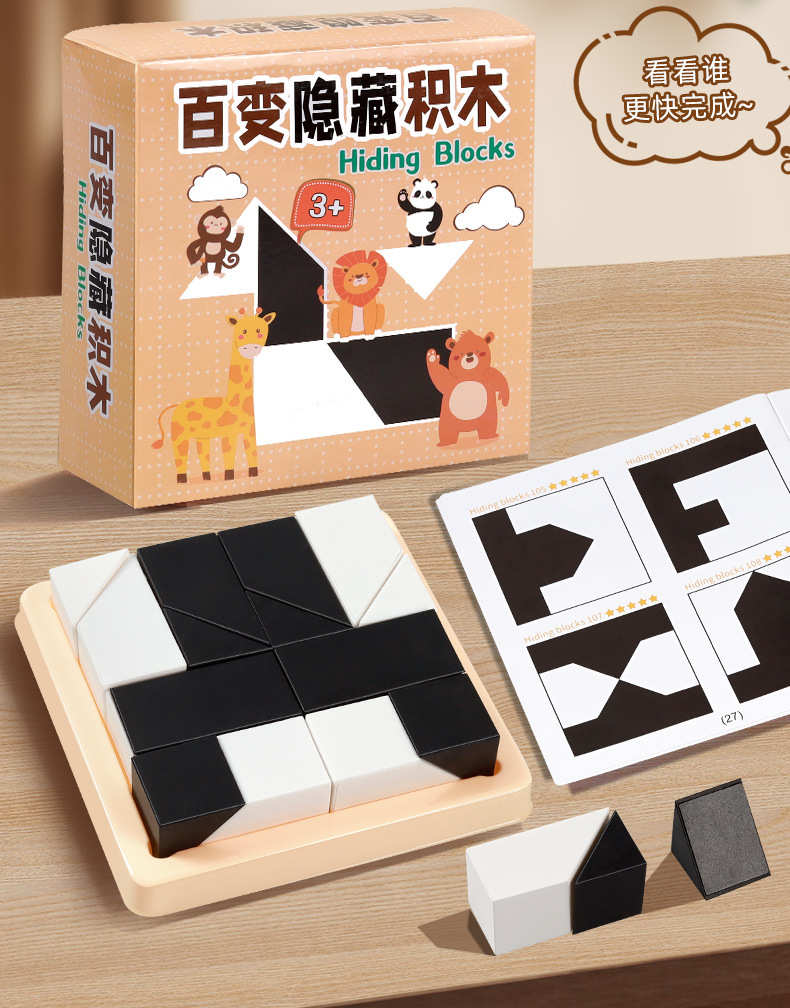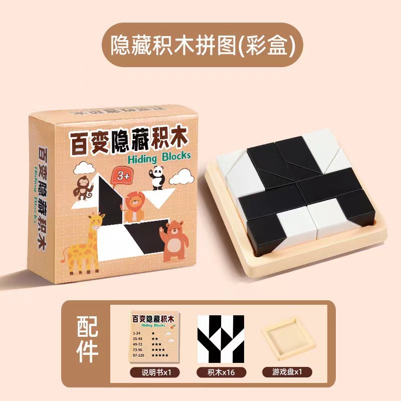 숨겨진 빌딩 블록 흑백 퍼즐 6~12세 이상 소년 10~14세 소녀 어린이 교육 조립 훈련 장난감
