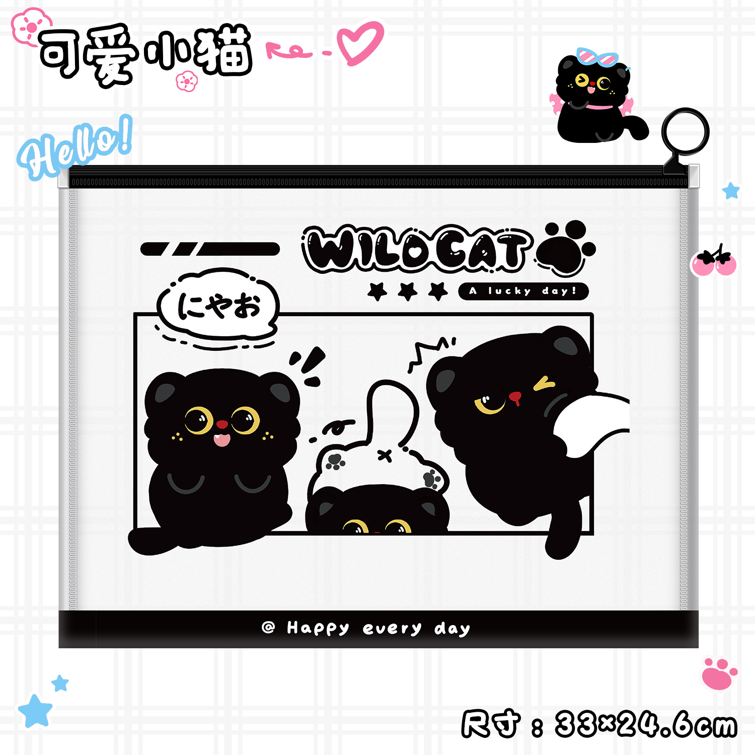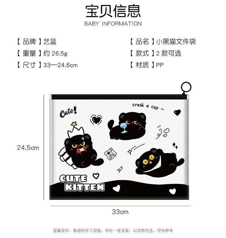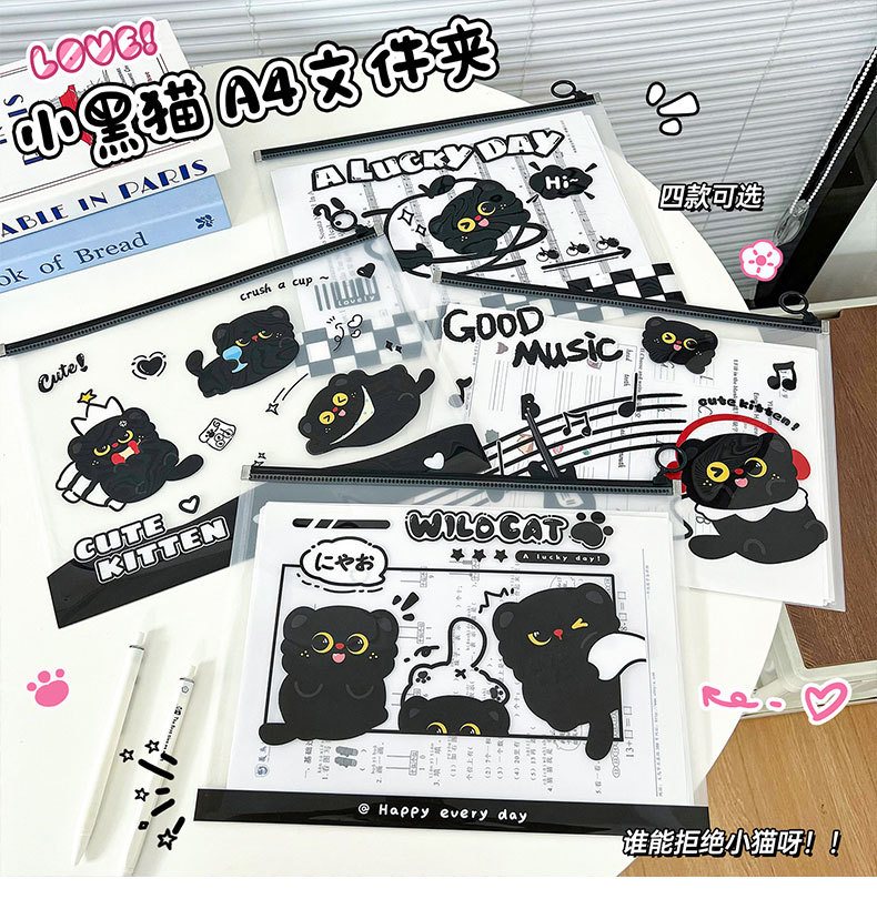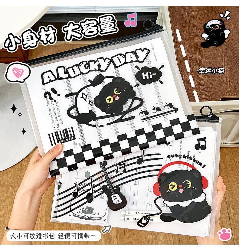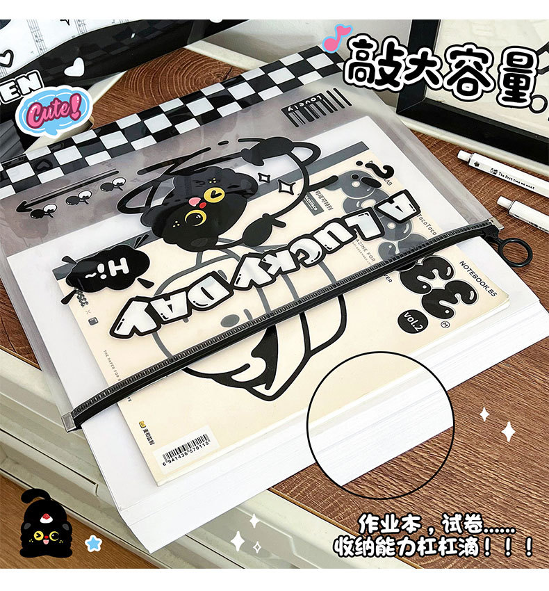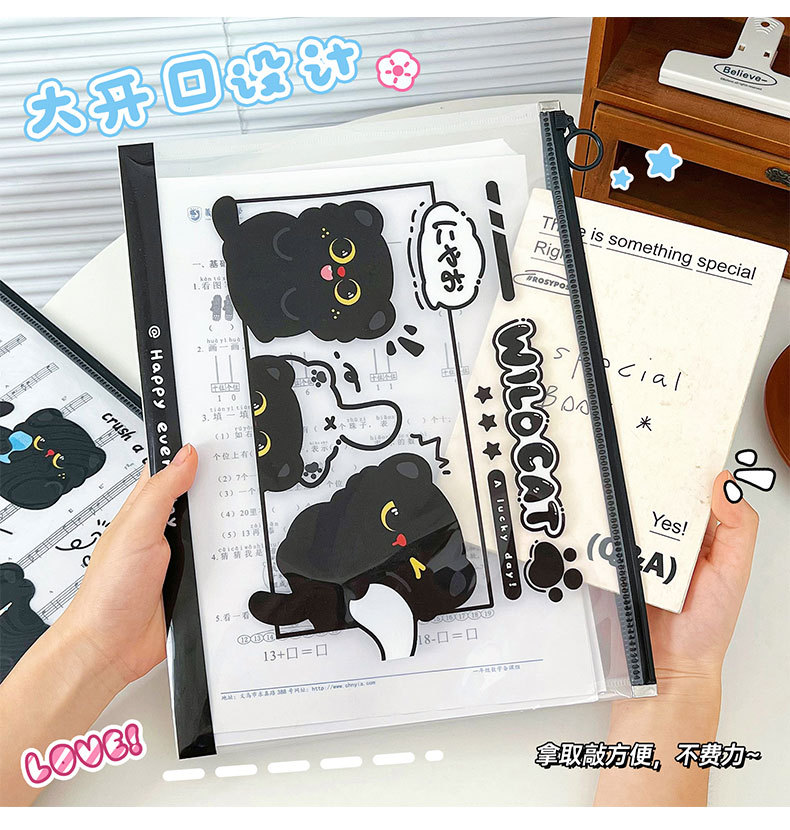 작은 검은 고양이 파일 가방 A4 ins 스타일 PP 끈 가방 투명 심플한 문서 파일 방수 시험지 가방 보관 가방스토어 가기