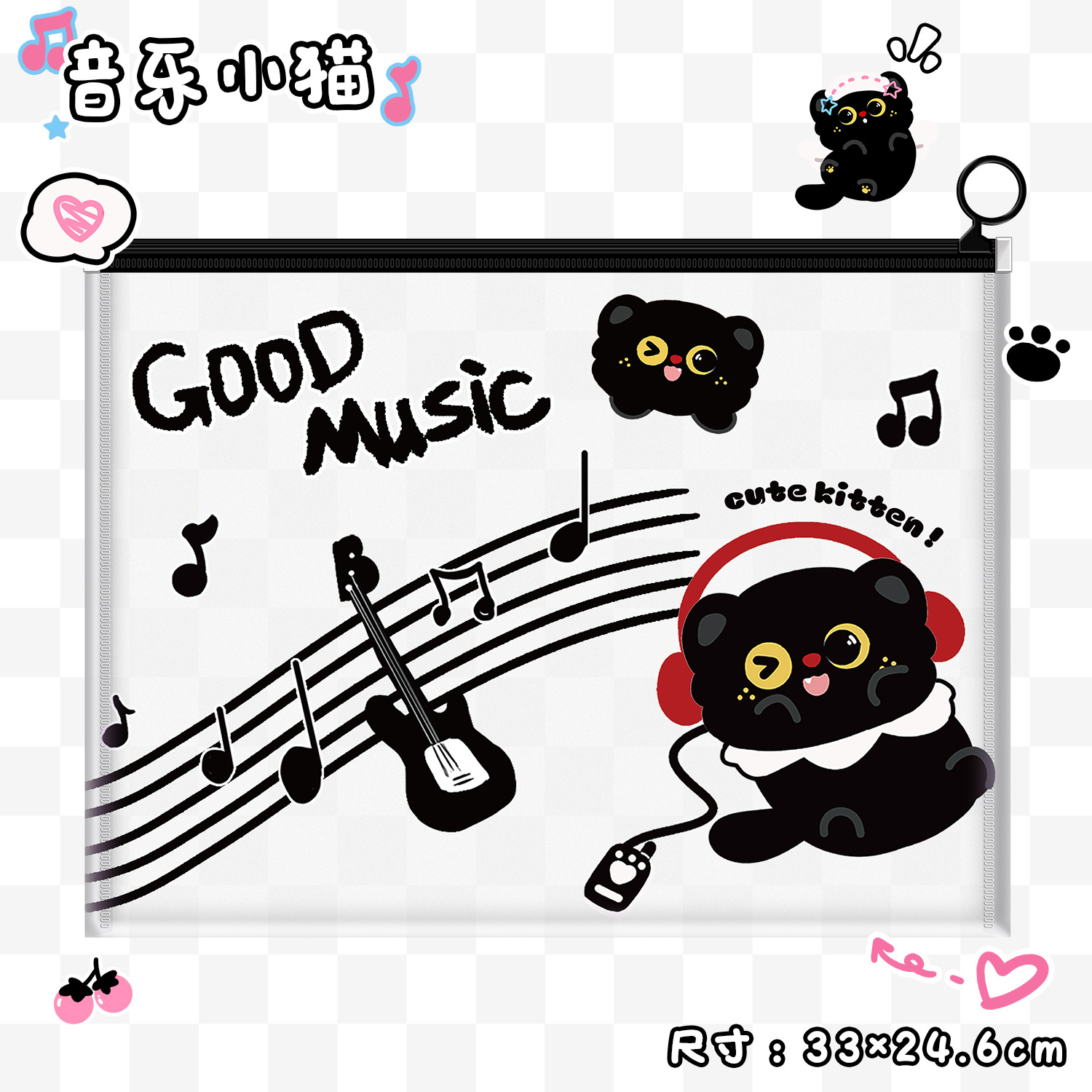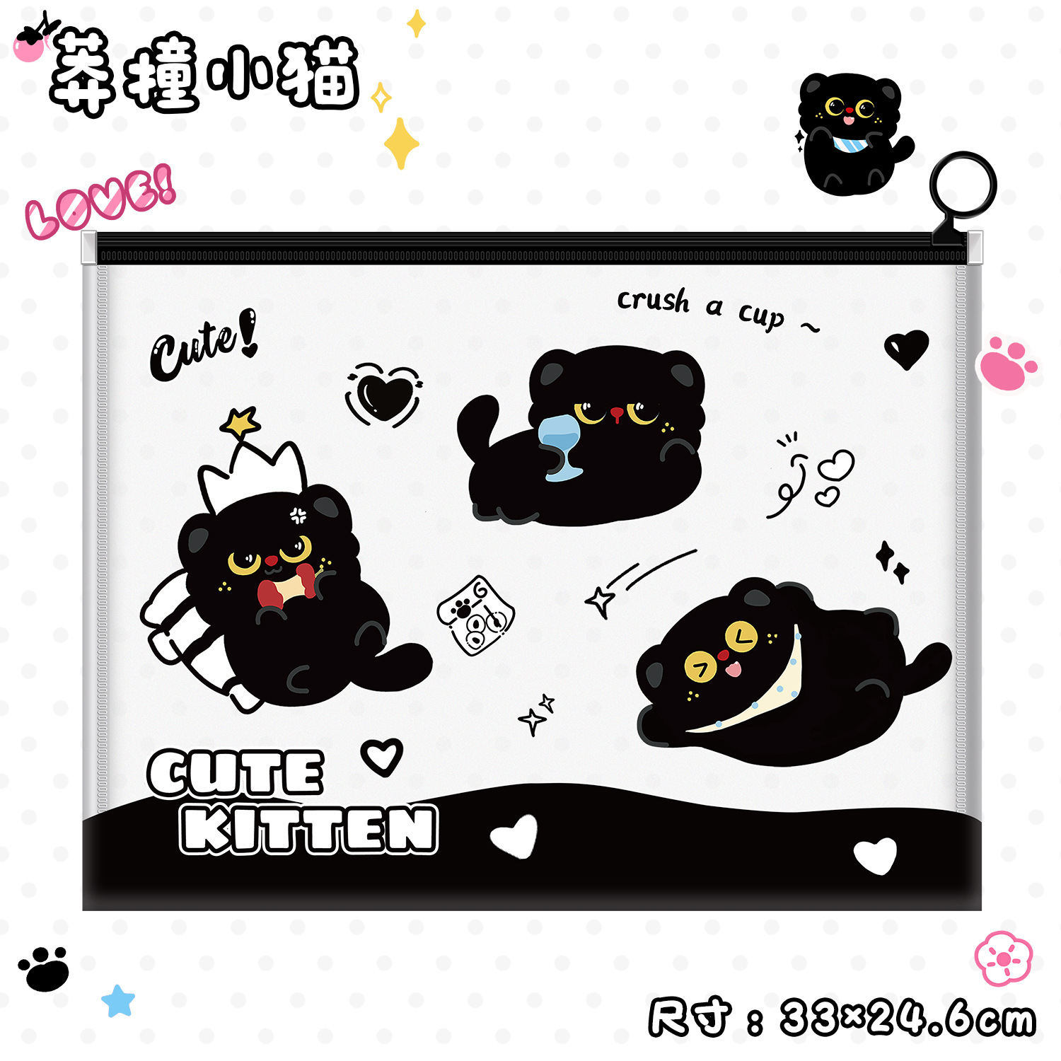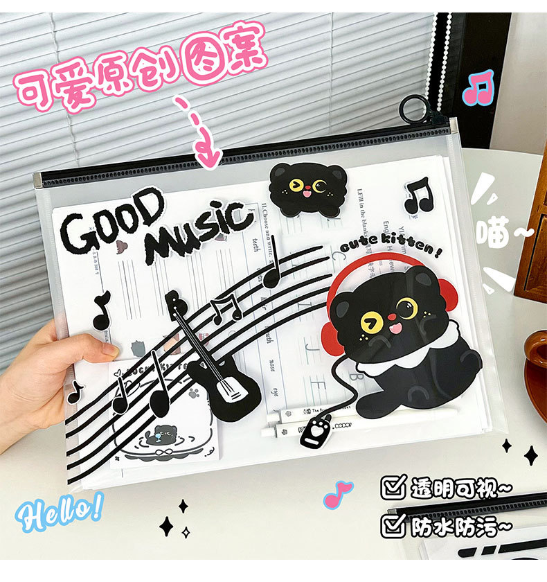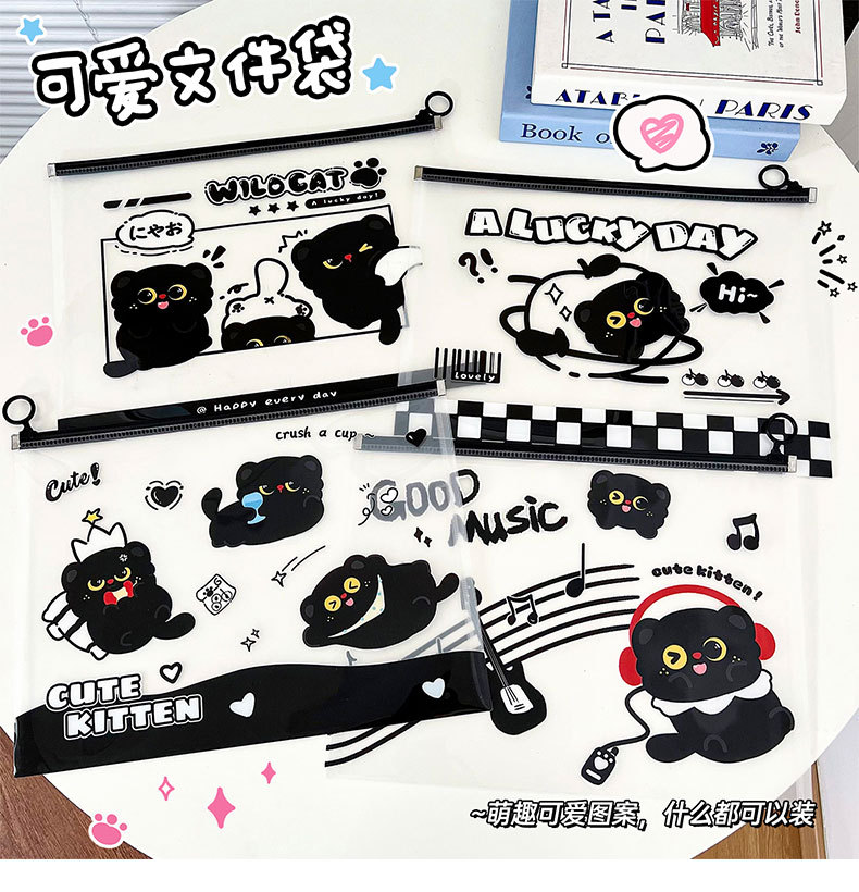 작은 검은 고양이 파일 가방 A4 ins 스타일 PP 끈 가방 투명 심플한 문서 파일 방수 시험지 가방 보관 가방