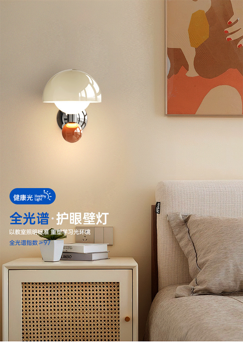 버섯 크림 스타일 벽 램프 침실 머리맡 작은 샹들리에 마스터 침실 벽 램프 거실 램프 크리 에이 티브 어린이 방 눈 보호 벽 램프스토어 가기