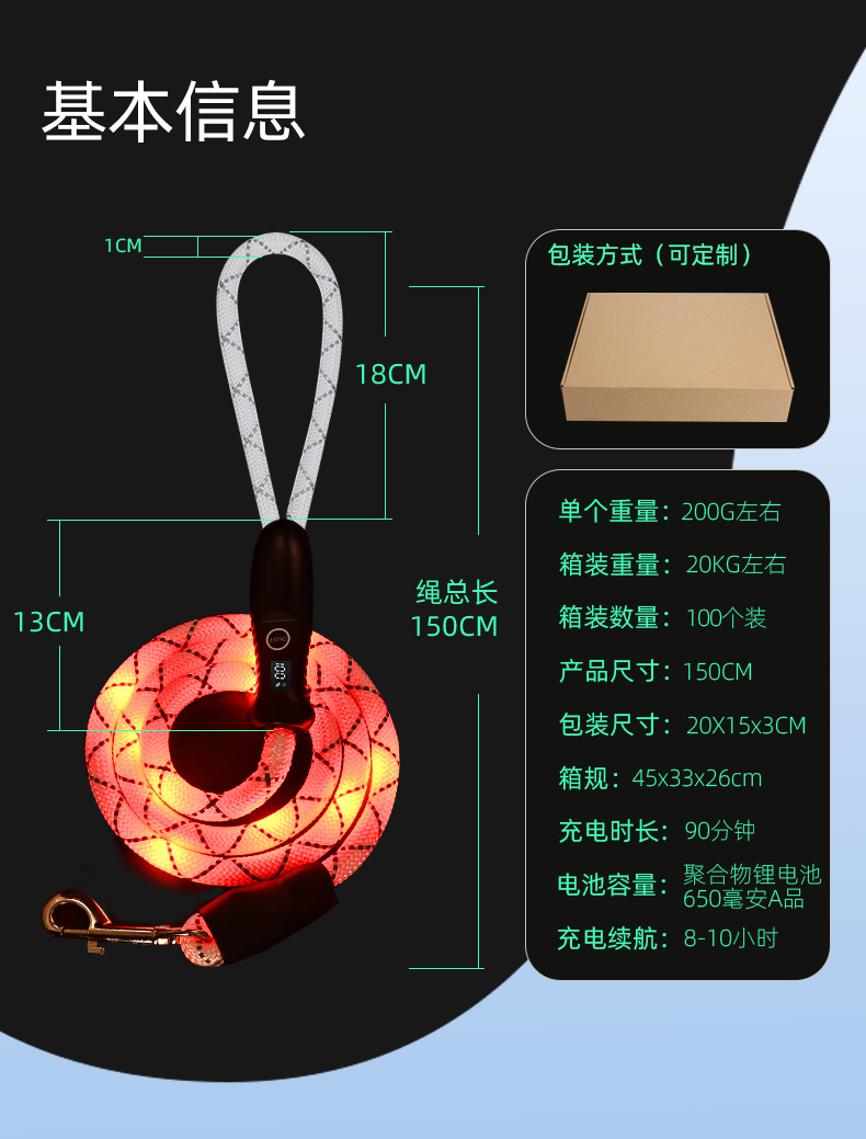발광 애완동물 가죽끈, 전원 표시, 개 산책용 가죽끈, 가죽끈 하네스, 가죽끈, 충전식 고양이 및 개 가죽끈, 맞춤형스토어 가기