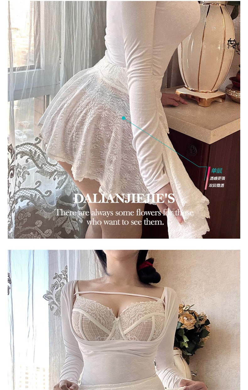 LianJie의 고급 버전* 아우터웨어 스커트 더블 레이어 시스루 퓨어 레이스 스위트 스커트