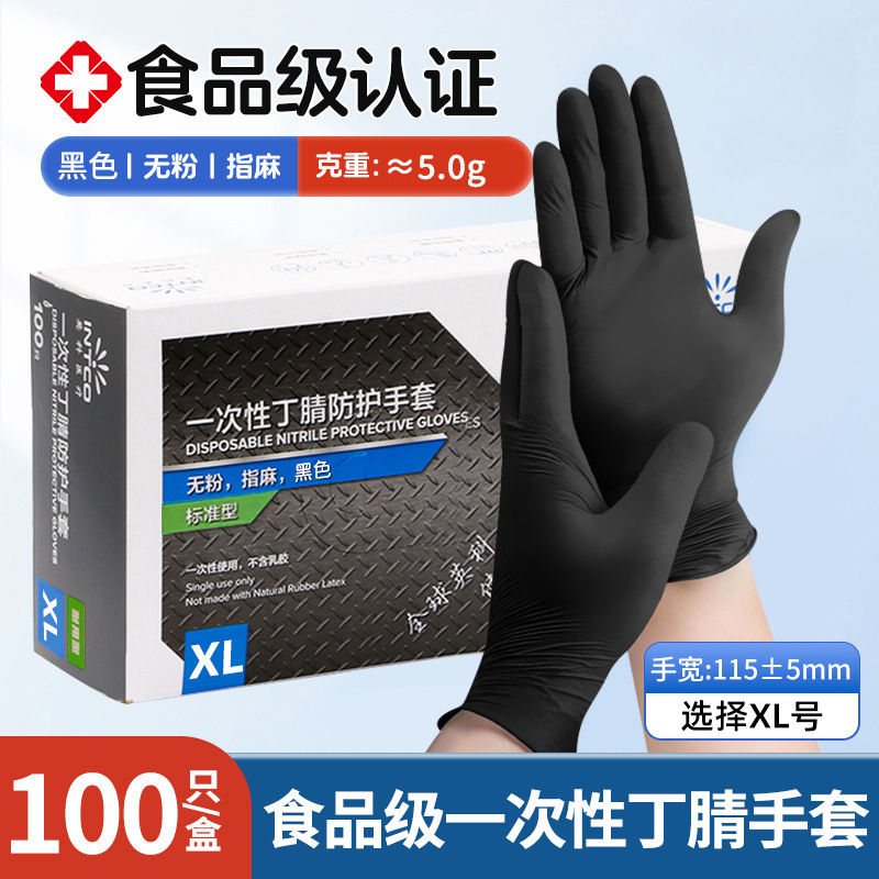 Yingke 일회용 검정색 니트릴 검사 장갑 내구성 및 내유성 의료용 니트릴 두꺼운 고무 식품 등급스토어 가기