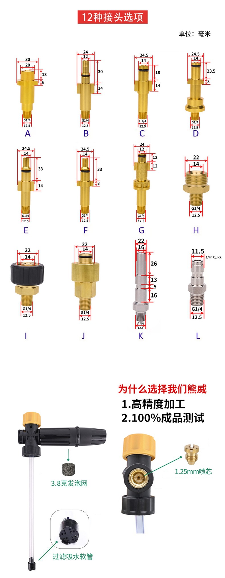 공장 직접 공급 세척 기계 고압 폼 스프레이 병 가정용 세차 고압 물총 스프레이 건 노즐 세차기 PA 병