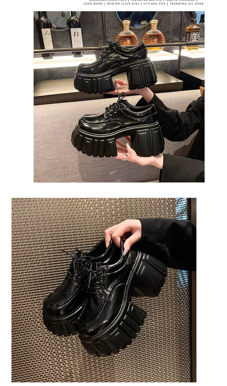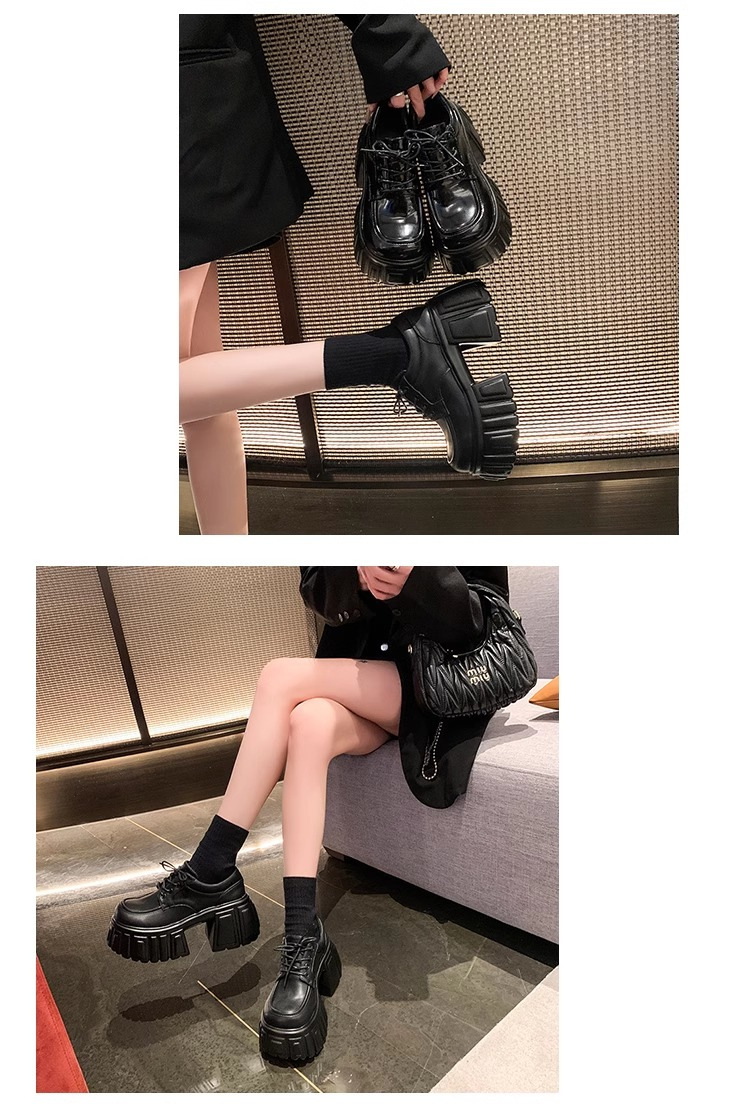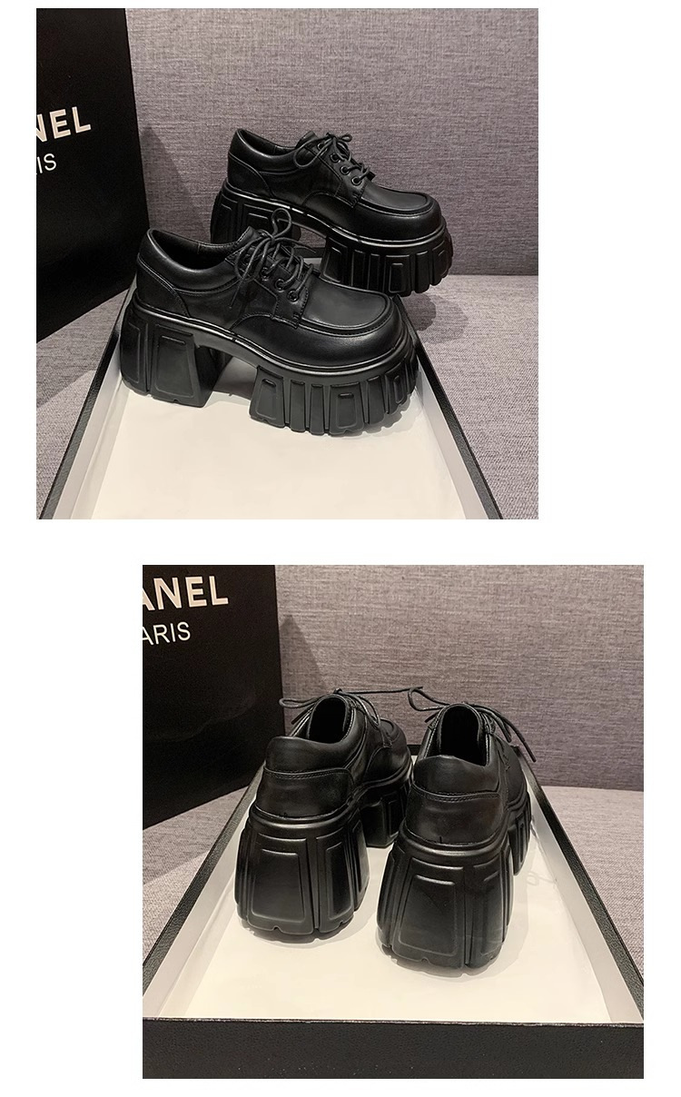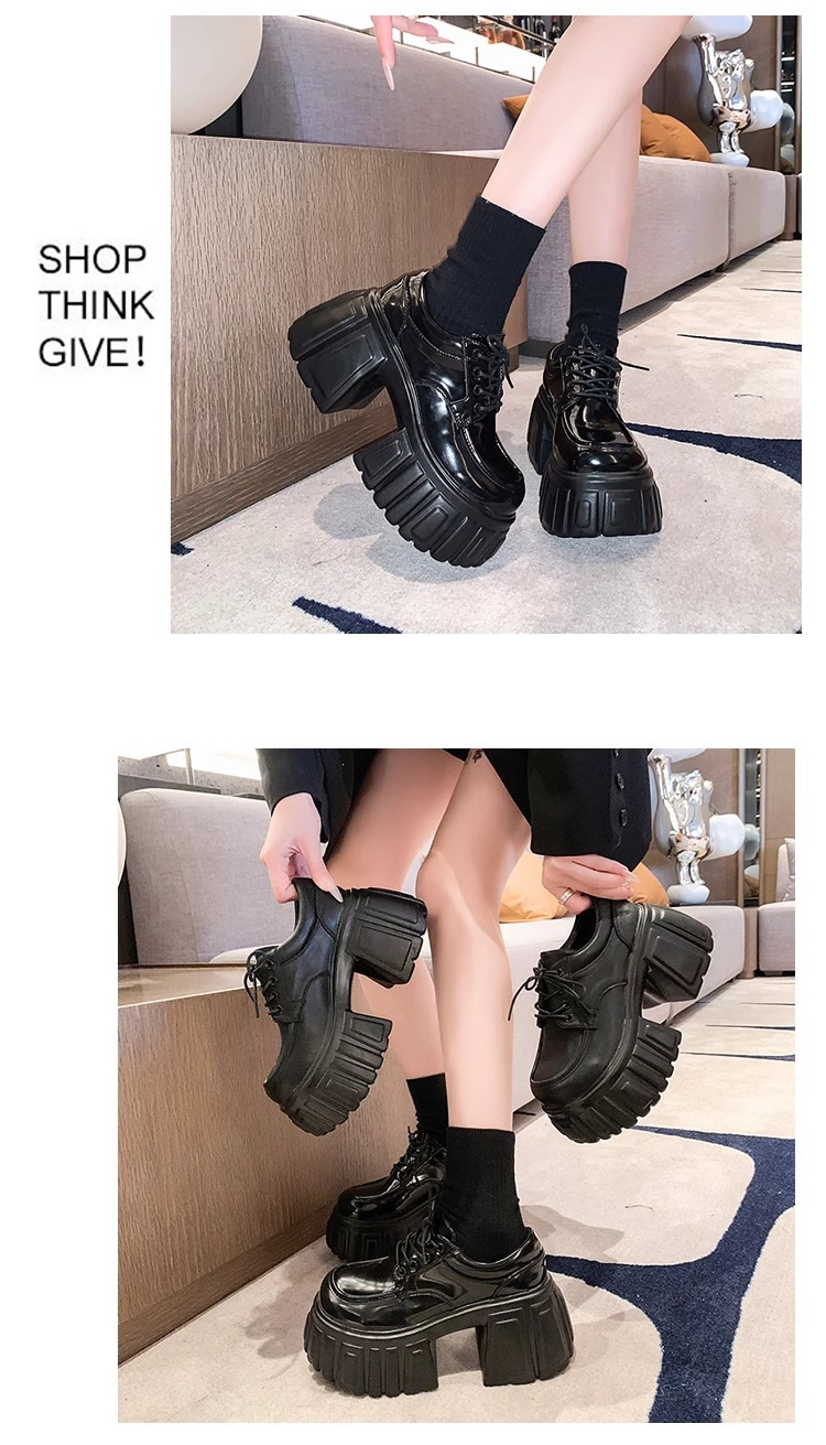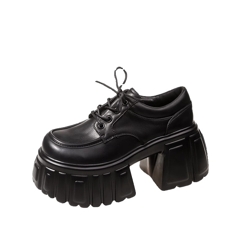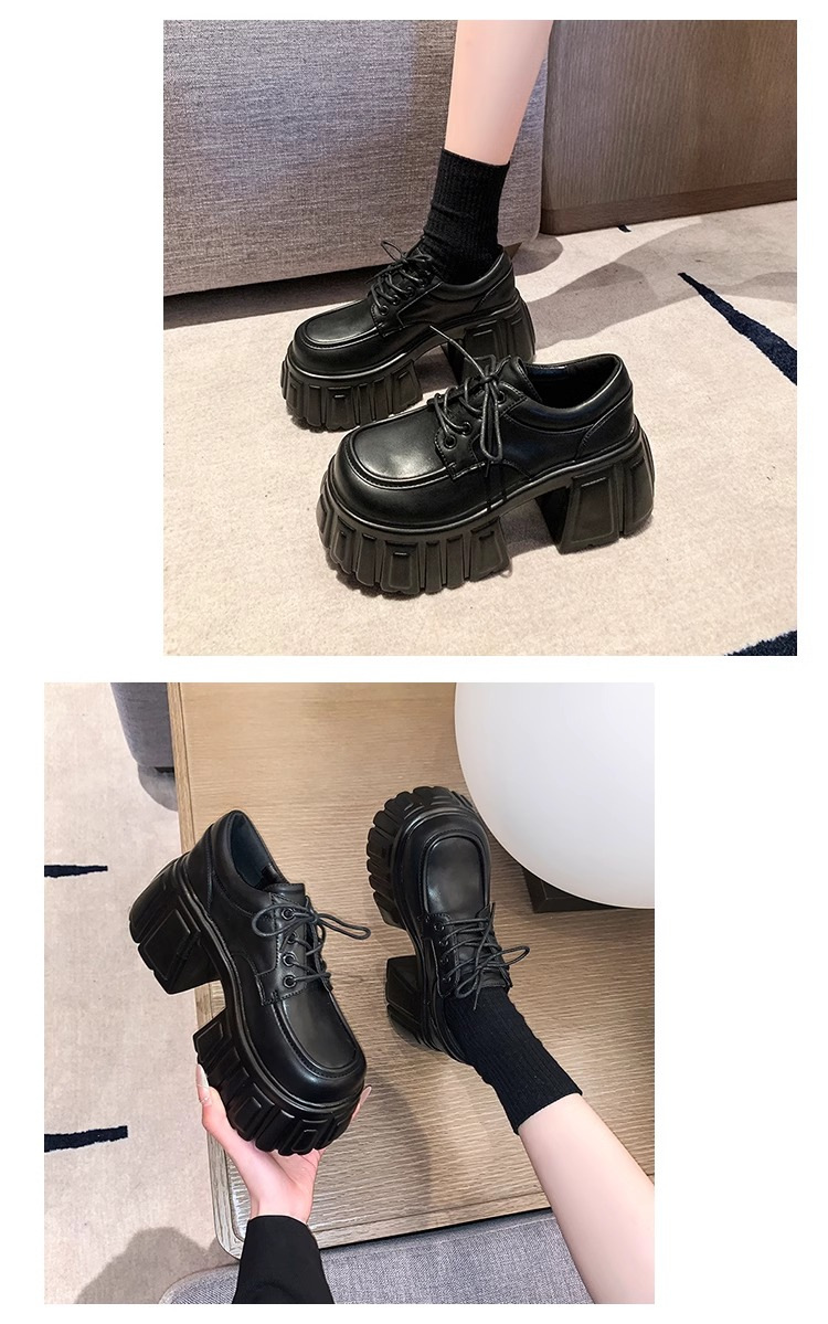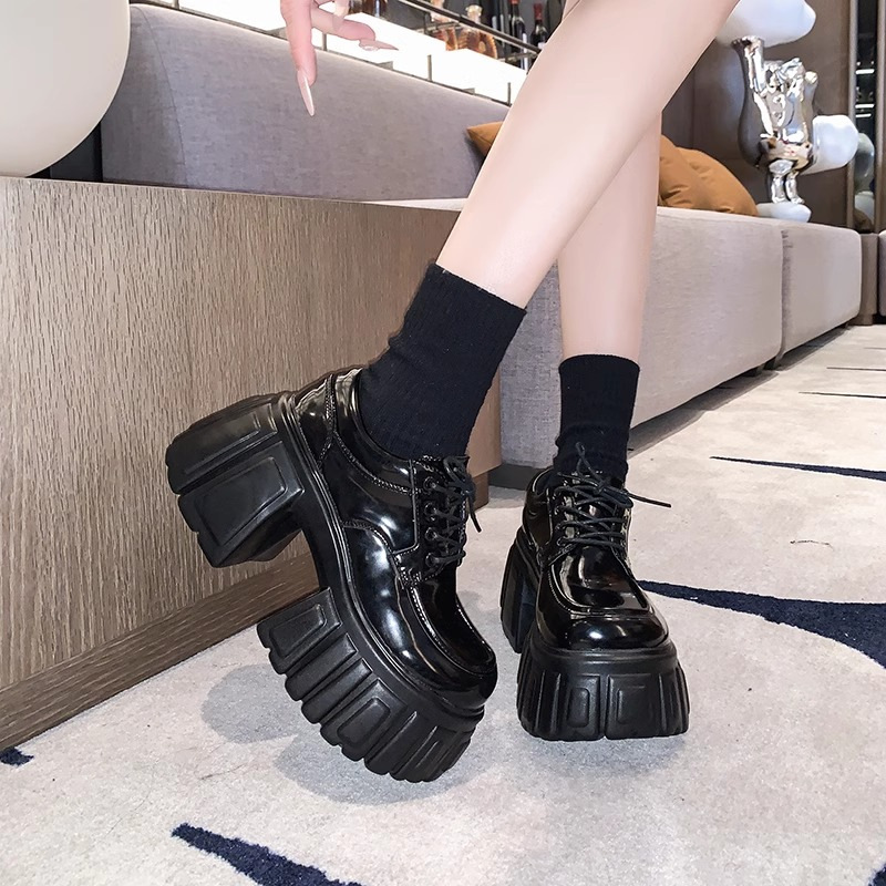 여성을위한 유럽 슈퍼 두꺼운 밑창 높이 힐 레이스 업 신발 2025 봄, 가을 플랫폼 라운드 발가락 로퍼 영국 스타일 작은 가죽 신발스토어 가기