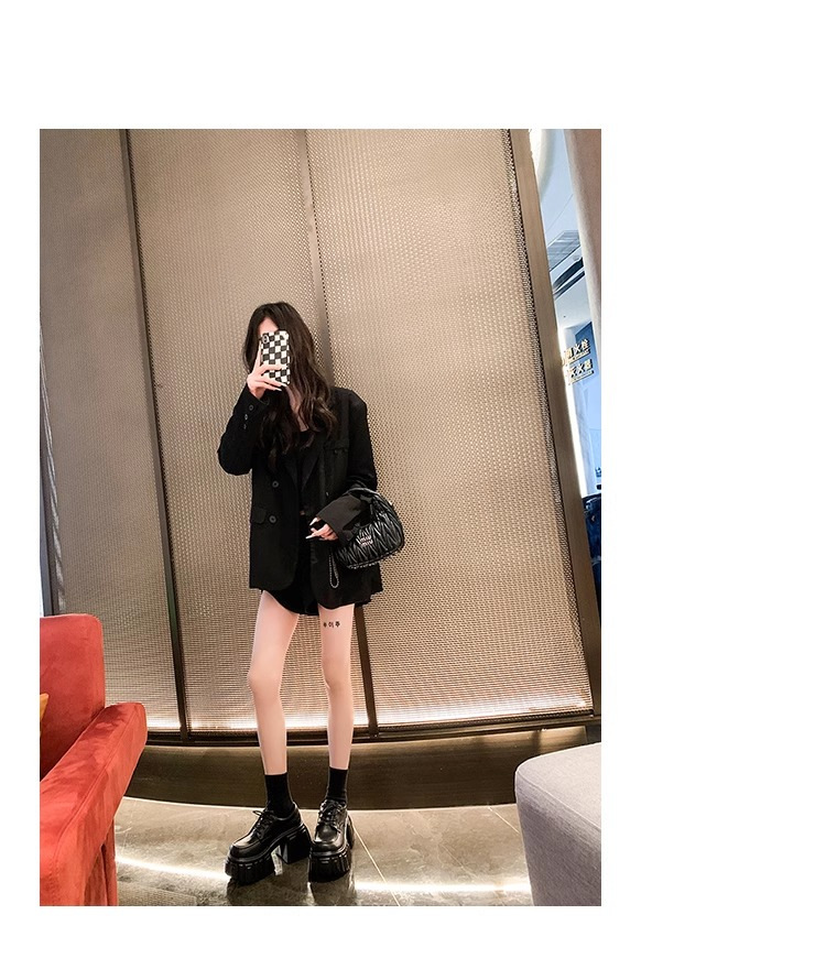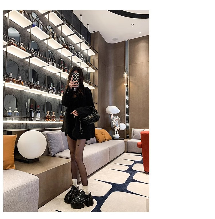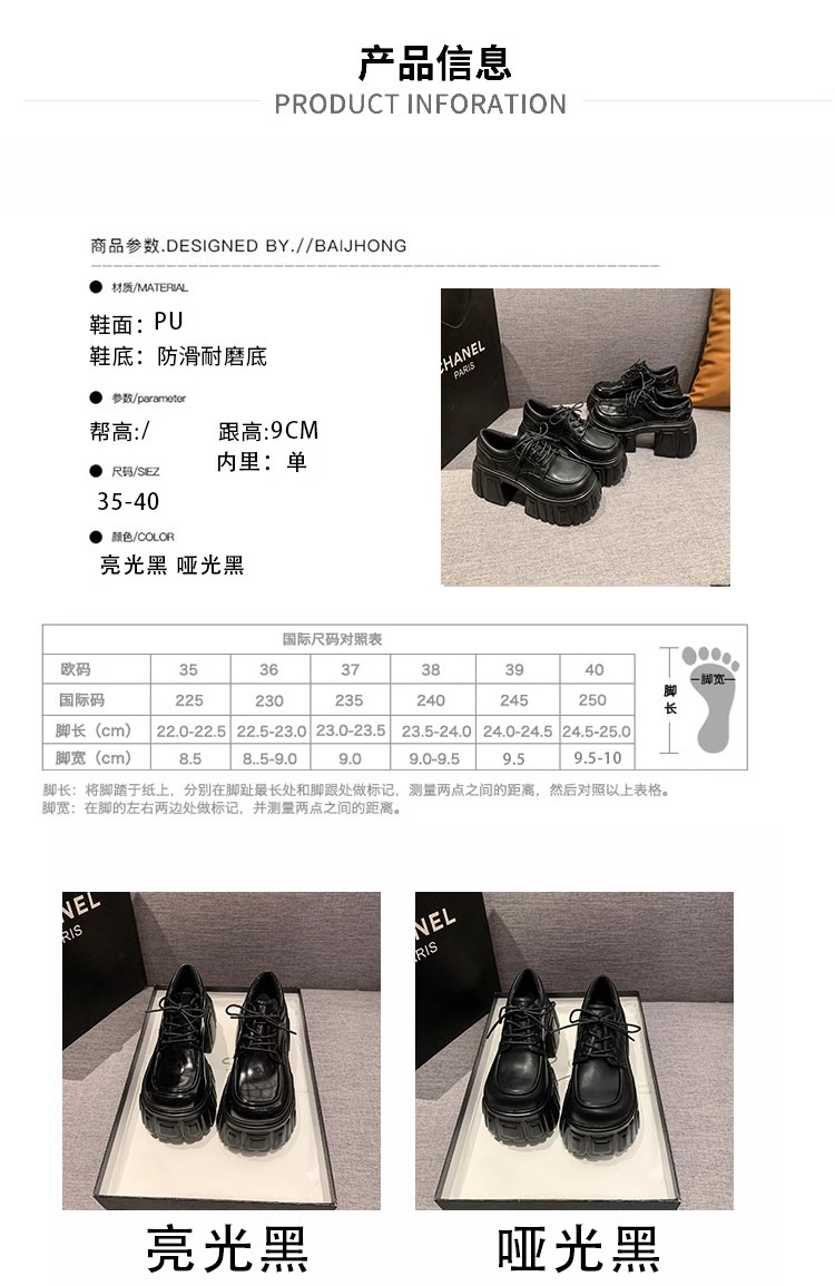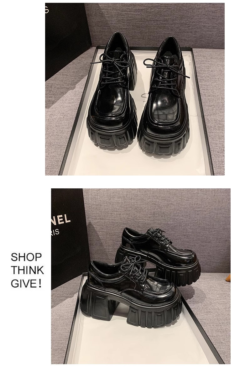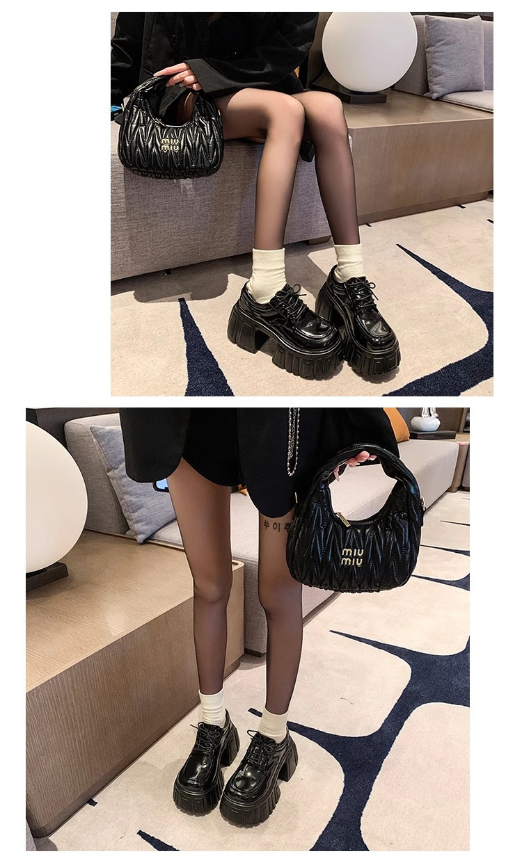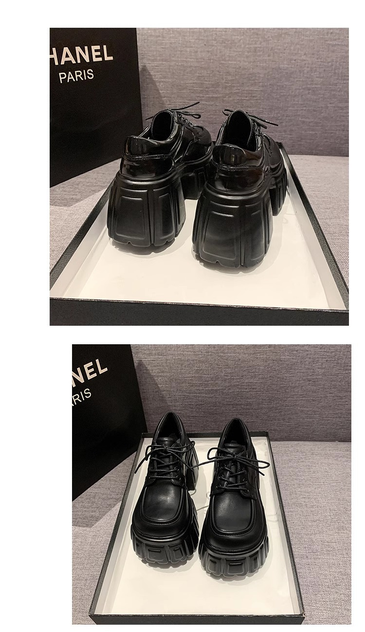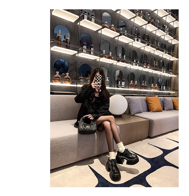 여성을위한 유럽 슈퍼 두꺼운 밑창 높이 힐 레이스 업 신발 2025 봄, 가을 플랫폼 라운드 발가락 로퍼 영국 스타일 작은 가죽 신발스토어 가기