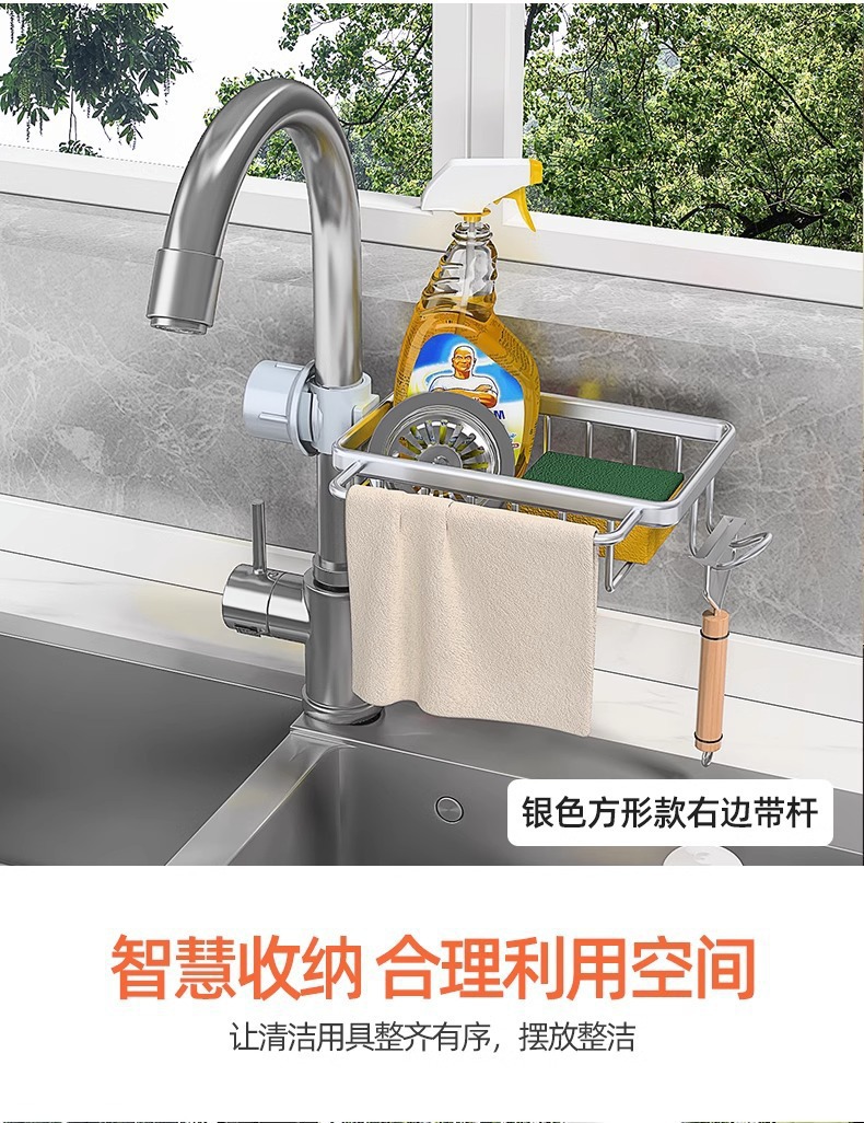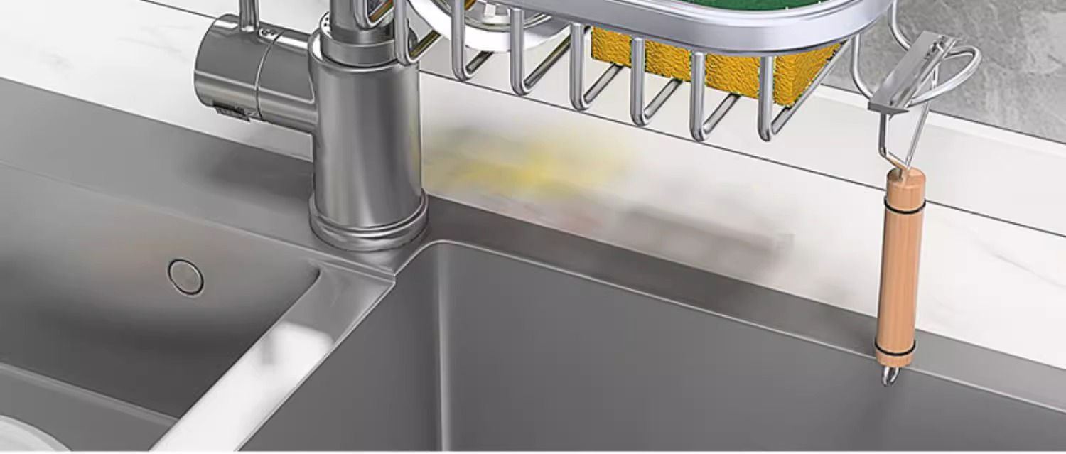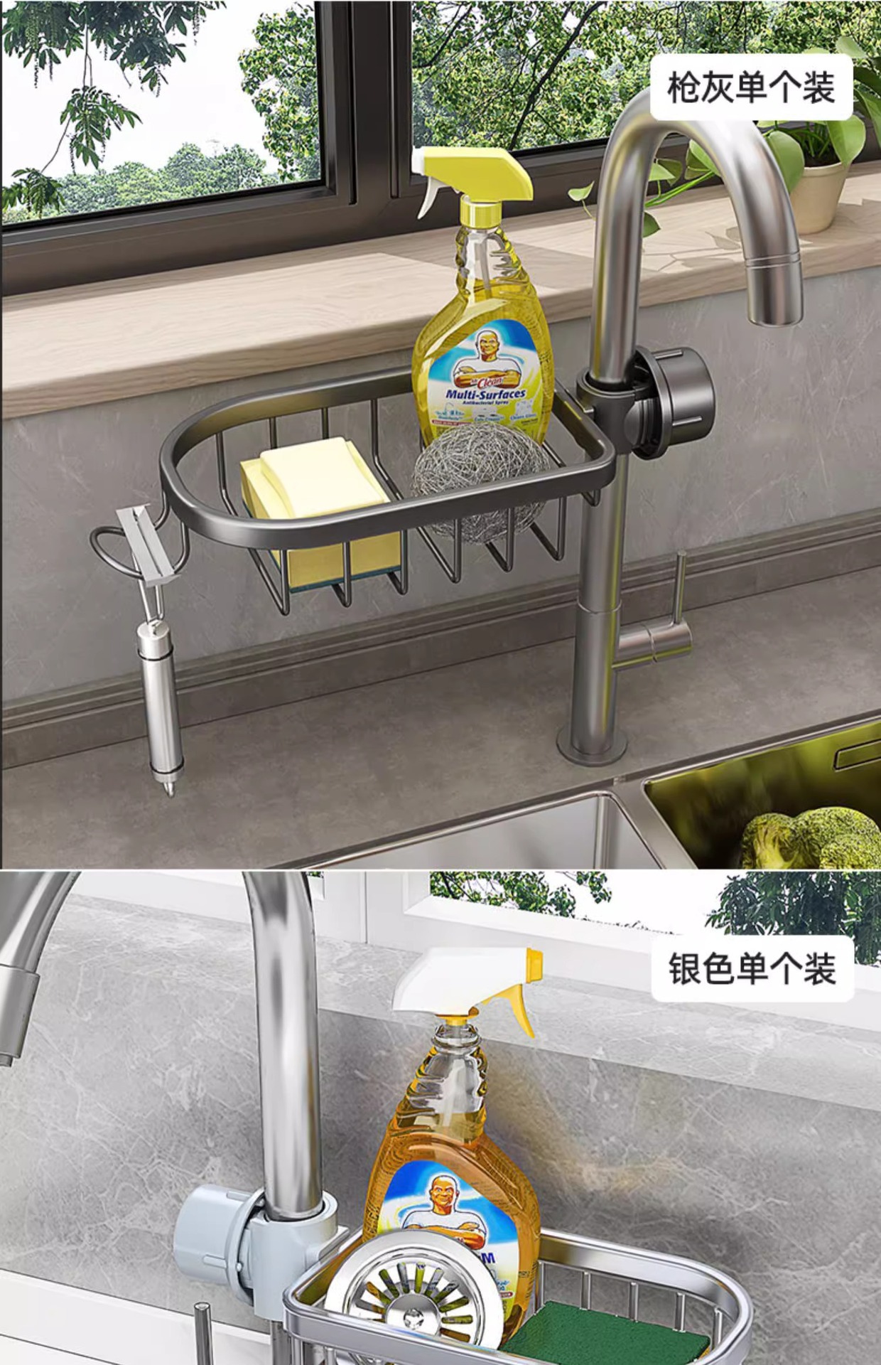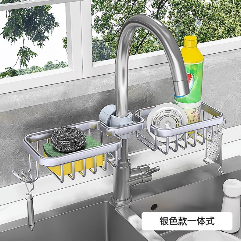 주방 수도꼭지 선반, 구멍이 없는 가정용 식기 세척 스펀지 보관 바구니, 배수 가능한 걸레 걸이스토어 가기