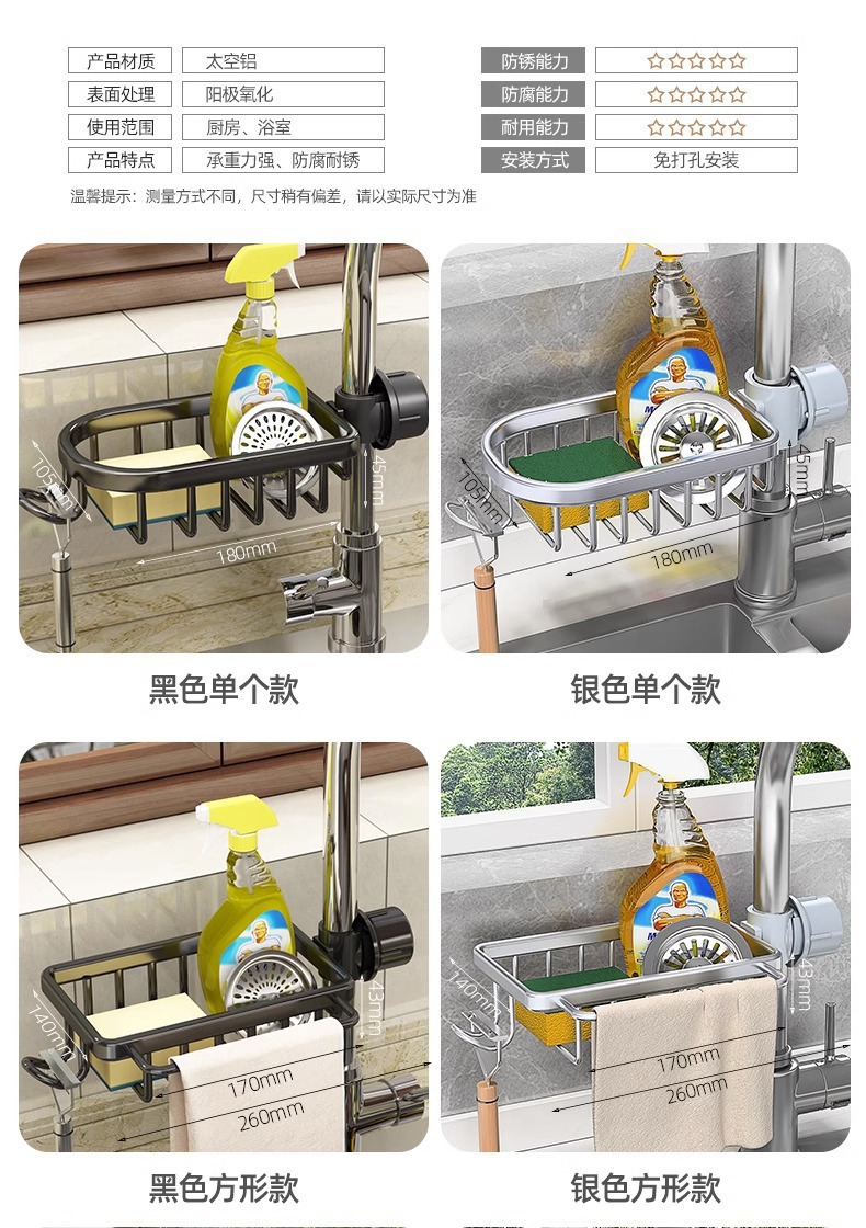 주방 수도꼭지 선반, 구멍이 없는 가정용 식기 세척 스펀지 보관 바구니, 배수 가능한 걸레 걸이