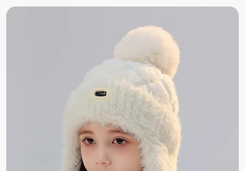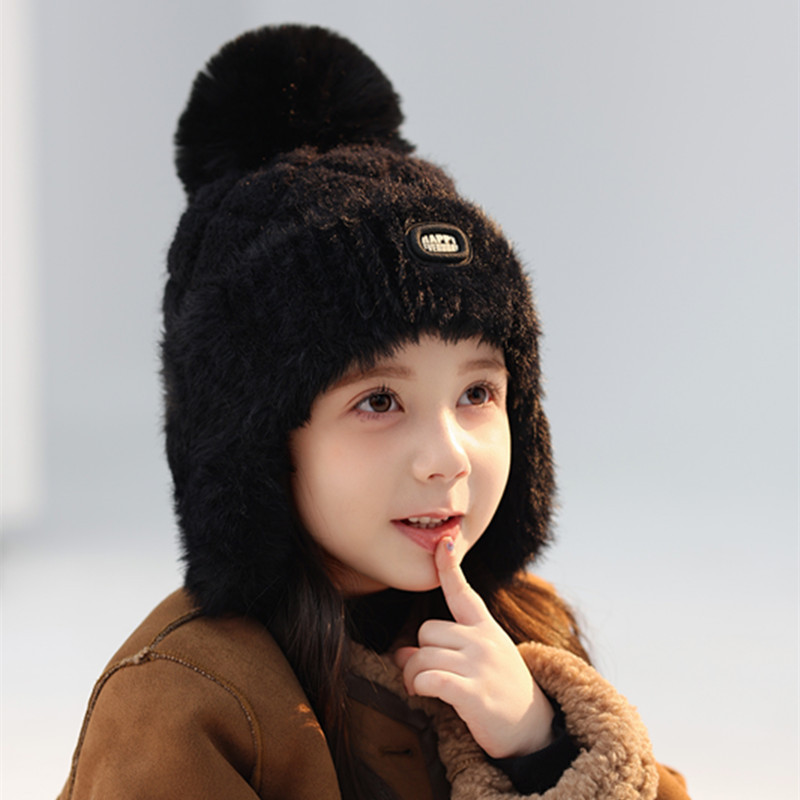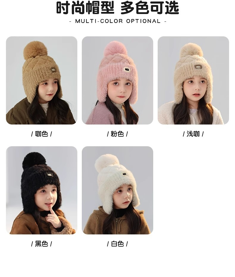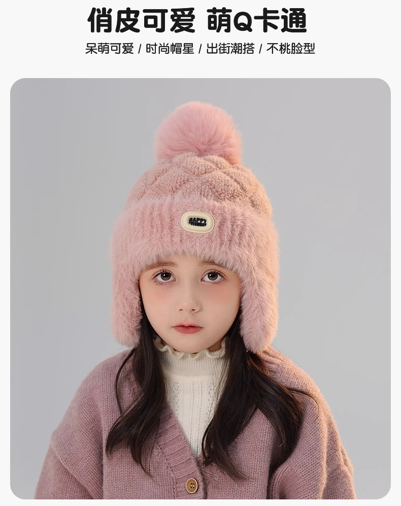 어린이 모자 2025 새로운 겨울 소년과 소녀 귀 보호 모피 공 레이펑 모자 얼굴이 보이는 작은 방한 따뜻한 니트 모자스토어 가기
