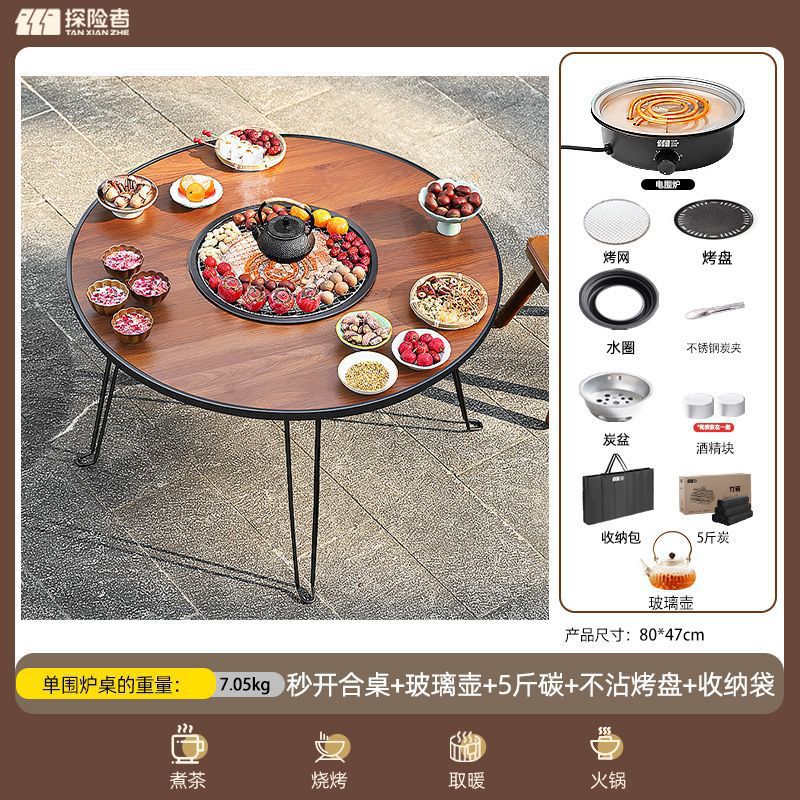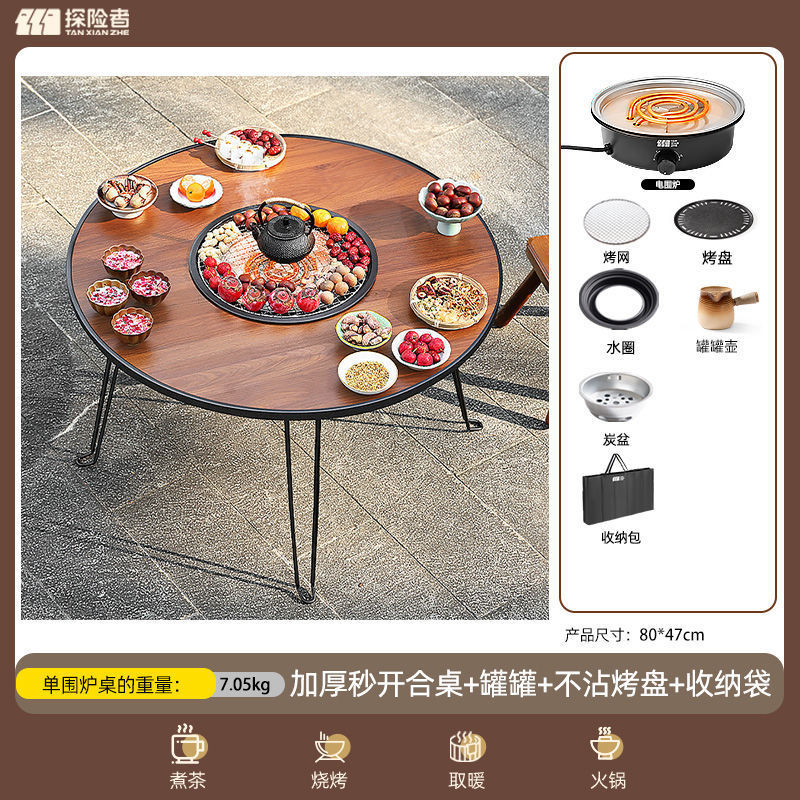 • 4~10인 80cm인용 테이블(전기 및 탄소 겸용) - 두꺼워진 2차 개폐 테이블 + 찻주전자 + 들러붙지 않는 베이킹 팬 + 수납가방
