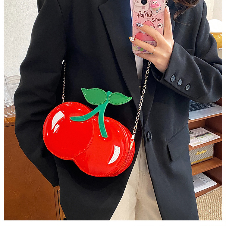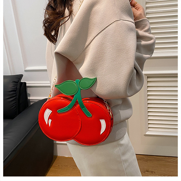 개인화 된 체리 모양의 작은 가방 2025 새로운 스타일의 작은 신선한 예술적 소녀 귀여운 어깨 크로스 바디 과일 가방 유행스토어 가기