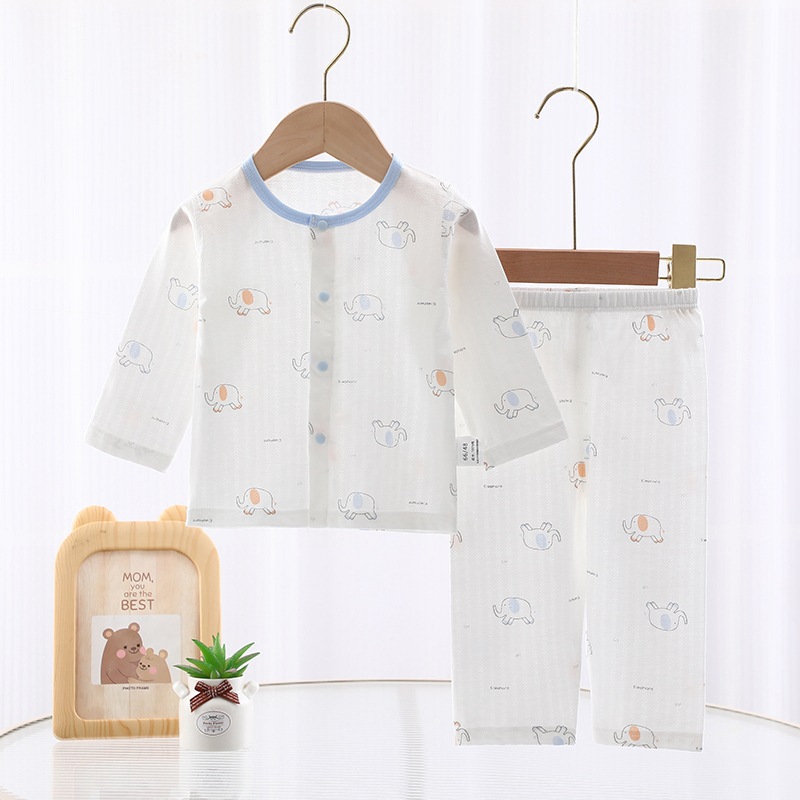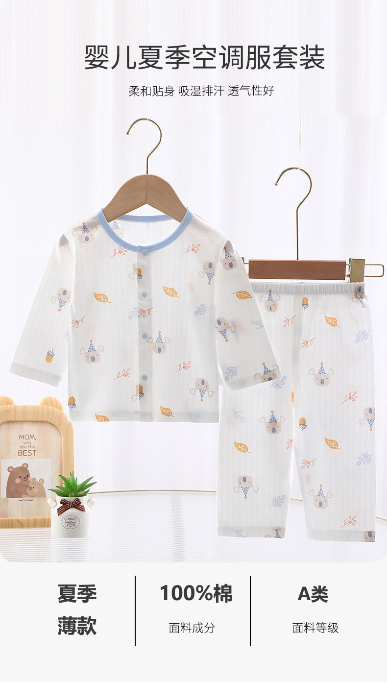 아기 가정복 여름 얇은 순면 스플릿 슈트 아기 아기 속옷 긴팔 에어컨 슈트 투피스 세트스토어 가기