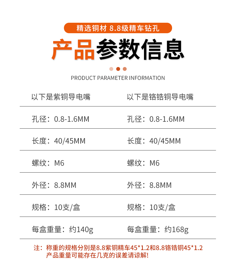 • (크롬 지르코늄 구리는 내구성을 높이기 위해 업그레이드되었습니다.) 40*0.8-(10개 팩)