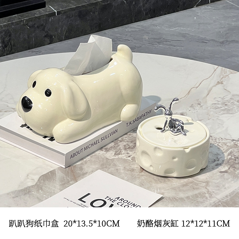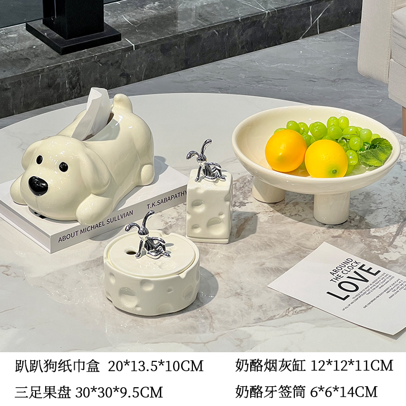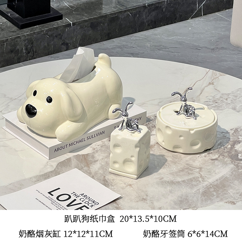 • ₮【밀크화이트】티슈박스 + 치즈재떨이 + 치즈이쑤시개통