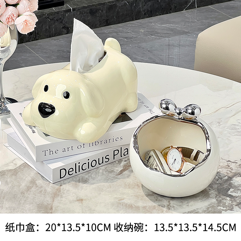 고급스러운 크림 스타일의 귀여운 티슈 상자, 거실의 가벼운 고급 냅킨 상자, 세라믹 티슈 상자, 창의적인 커피 테이블 장식품스토어 가기