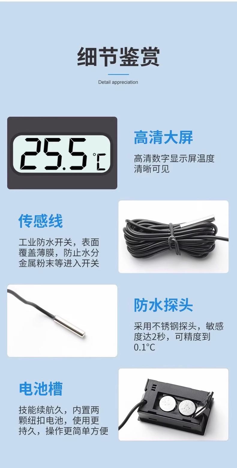 프로브 디지털 디스플레이 온도계 고정밀 수조 양식 전자 온도 센서 냉장고 온도계스토어 가기