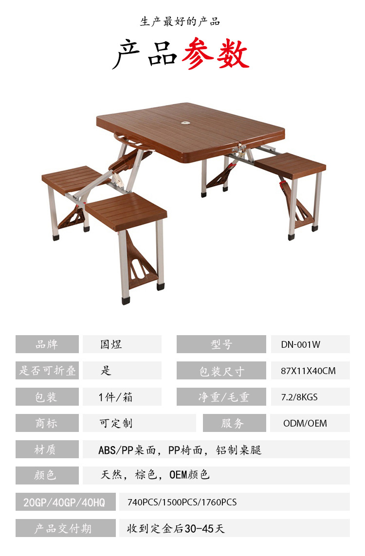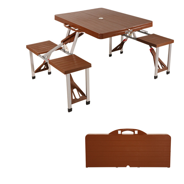 나뭇결 플라스틱 일체형 휴대용 접이식 테이블과 의자 야외 캠핑 여행 식탁 지상파 광고 전시 테이블