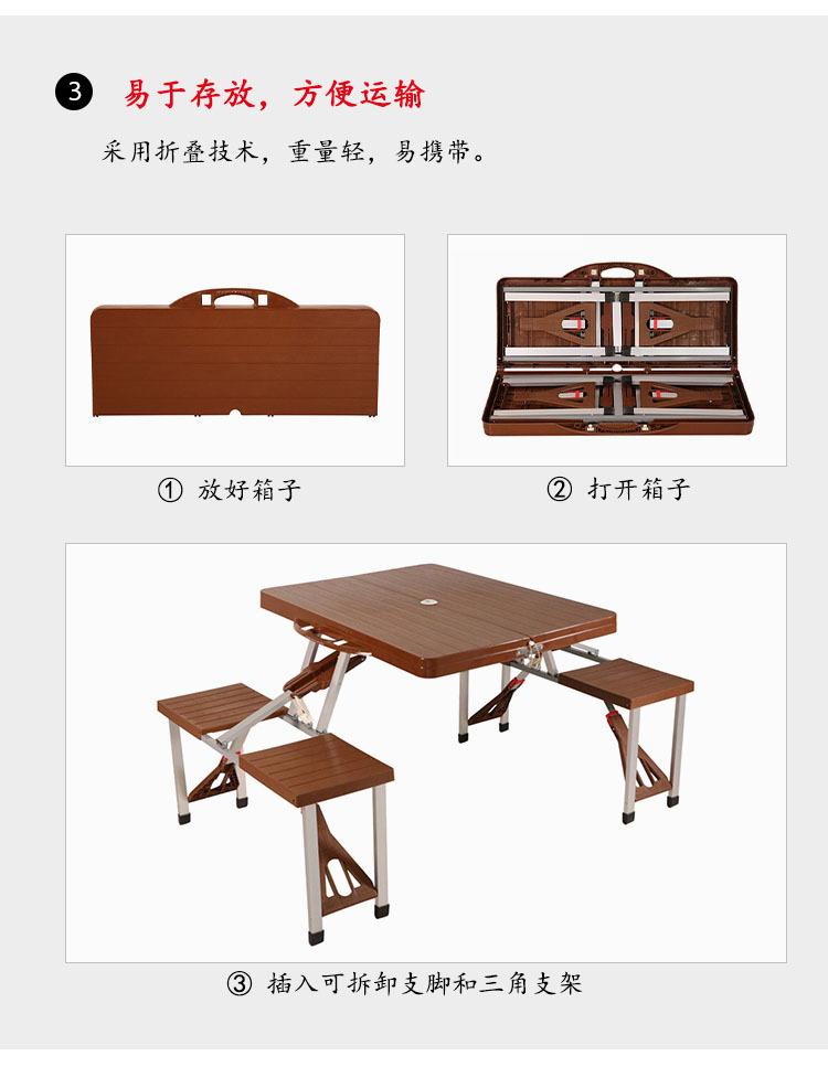 나뭇결 플라스틱 일체형 휴대용 접이식 테이블과 의자 야외 캠핑 여행 식탁 지상파 광고 전시 테이블스토어 가기