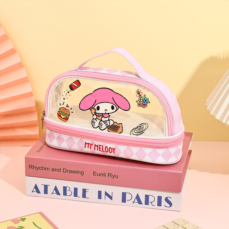 투명 더블 레이어 연필 가방 Sanrio Kuromi 입체 대용량 초등학교 문구 가방 휴대용 만화 연필 상자