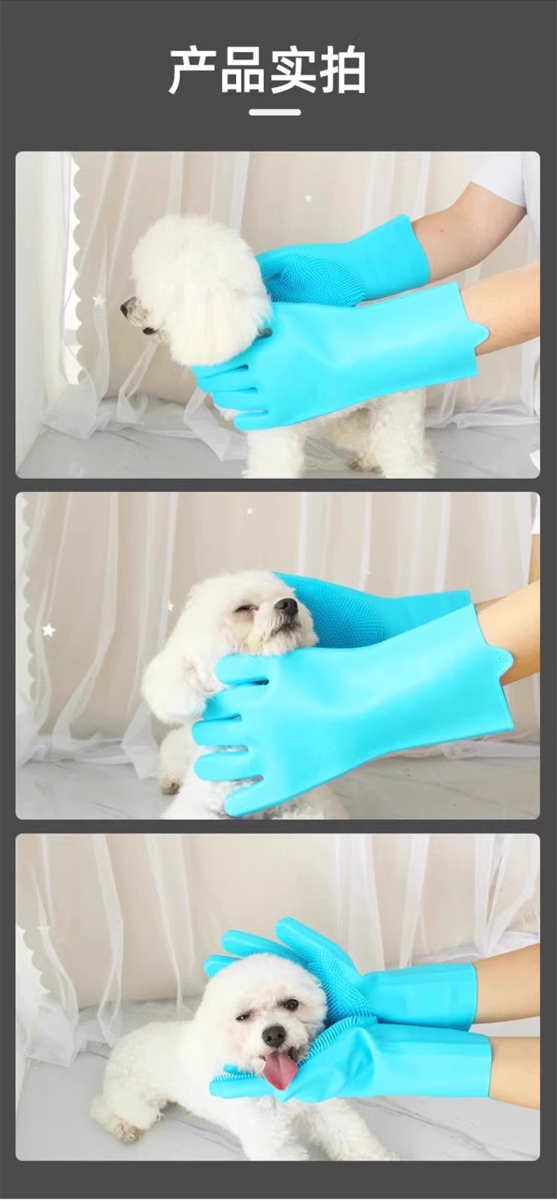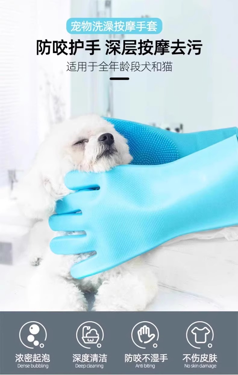 개와 고양이 목욕을위한 뜨거운 판매 애완 동물 목욕 실리콘 장갑, 긁힘 방지 및 물림 방지 테디 골든 리트리버 목욕 마사지 브러시스토어 가기