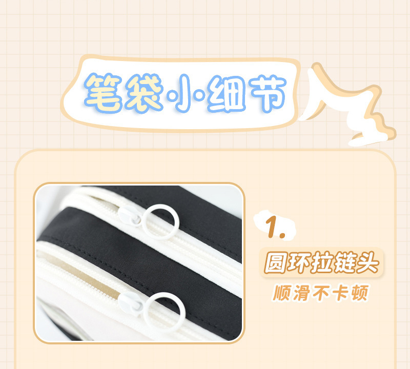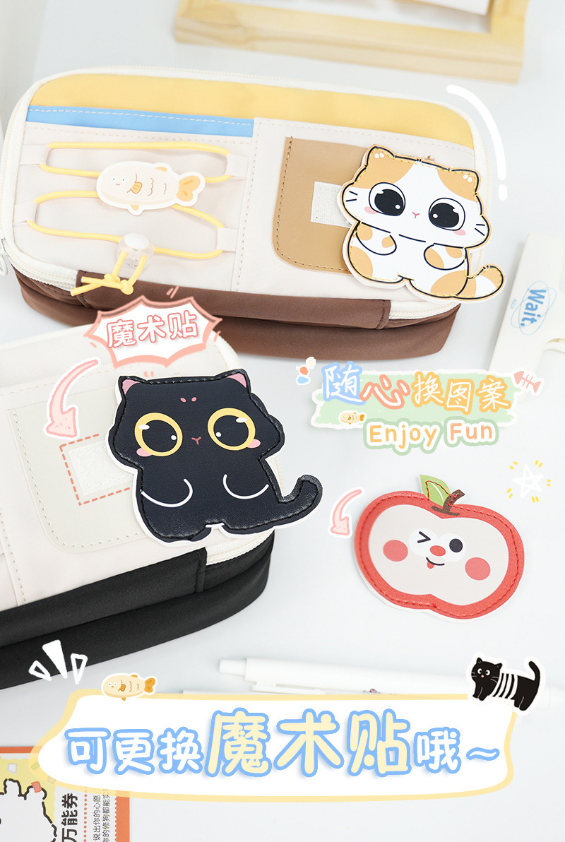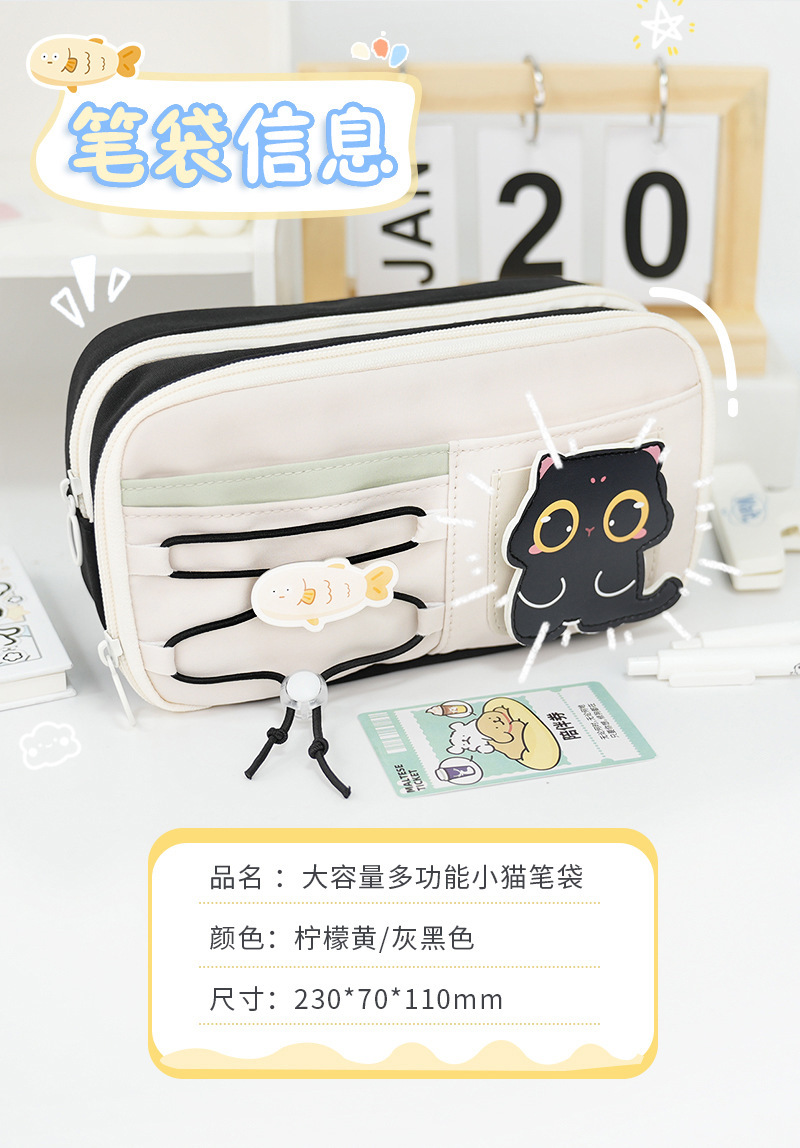 새로운 벨크로 연필 가방 귀여운 검은 새끼 고양이 다층 문구 가방 졸라매는 끈 고가 대용량 연필 상자