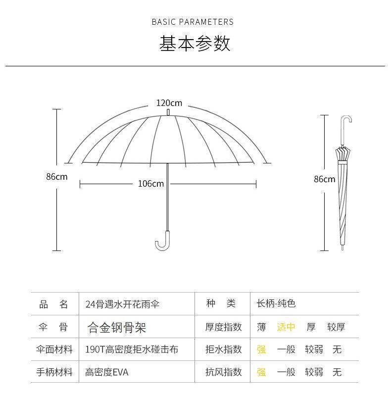 물에 노출되면 꽃이 피어나는 창의적인 긴 손잡이 우산, 남학생과 여학생을 위한 단색 비 또는 빛 직선 우산, 더블 캐주얼 커플 우산스토어 가기