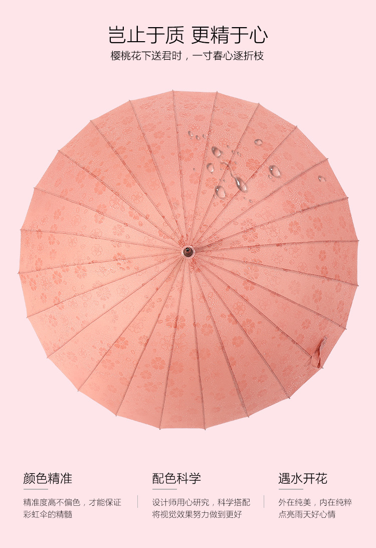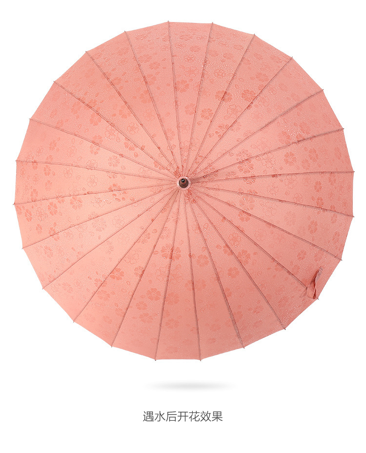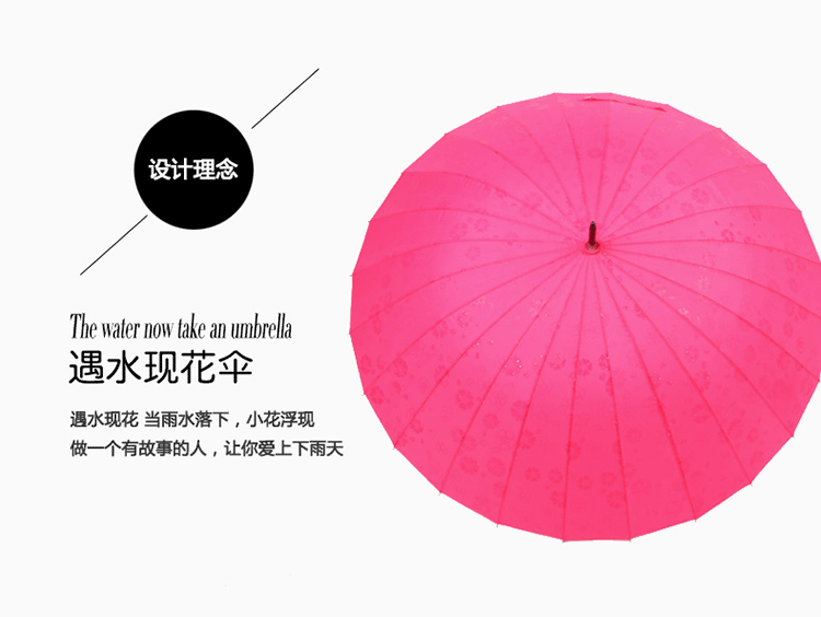 물에 노출되면 꽃이 피어나는 창의적인 긴 손잡이 우산, 남학생과 여학생을 위한 단색 비 또는 빛 직선 우산, 더블 캐주얼 커플 우산