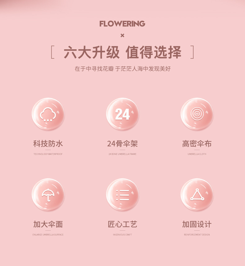 • 물에 닿으면 꽃이 피는 곡선형 손잡이 우산