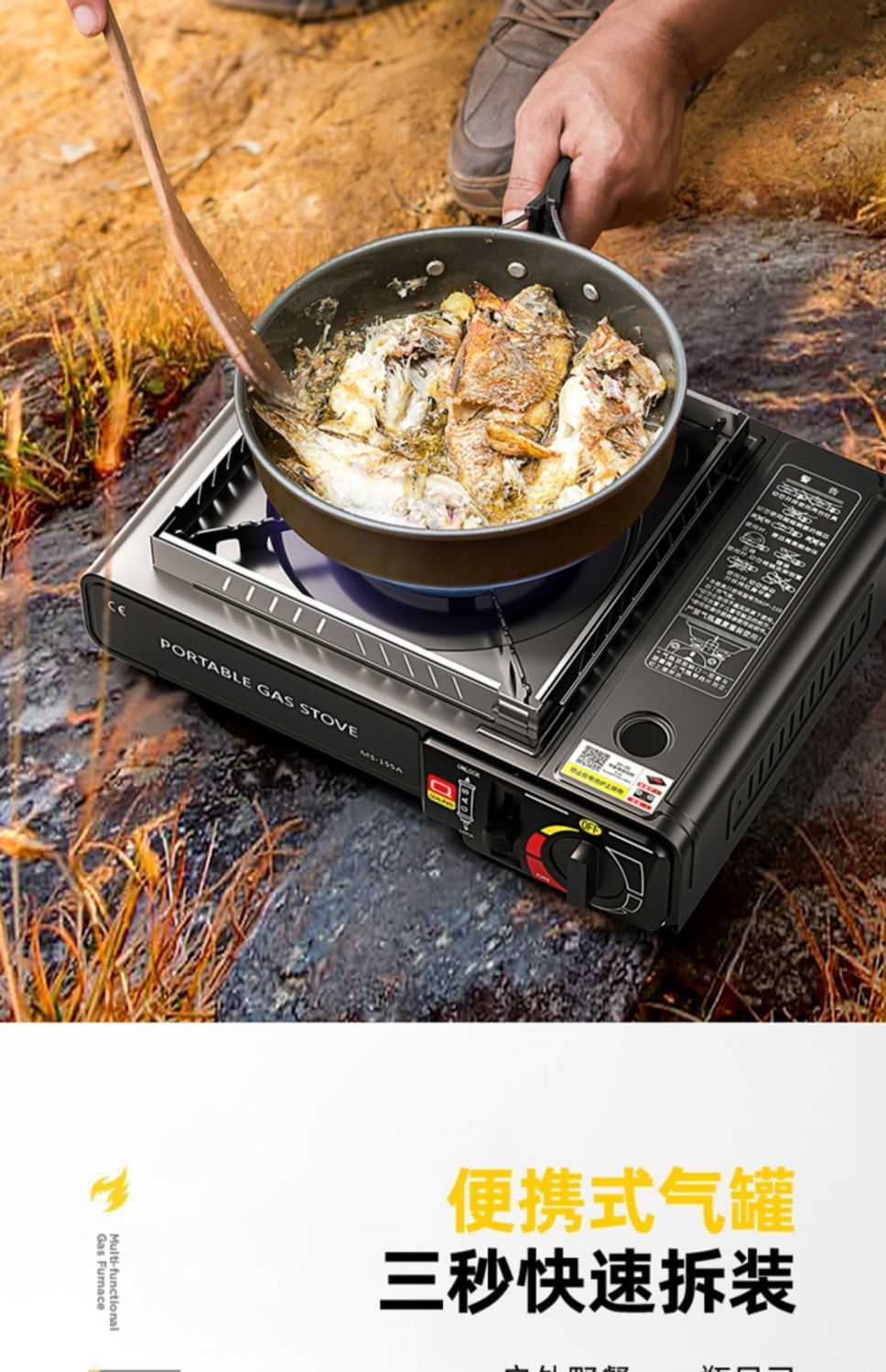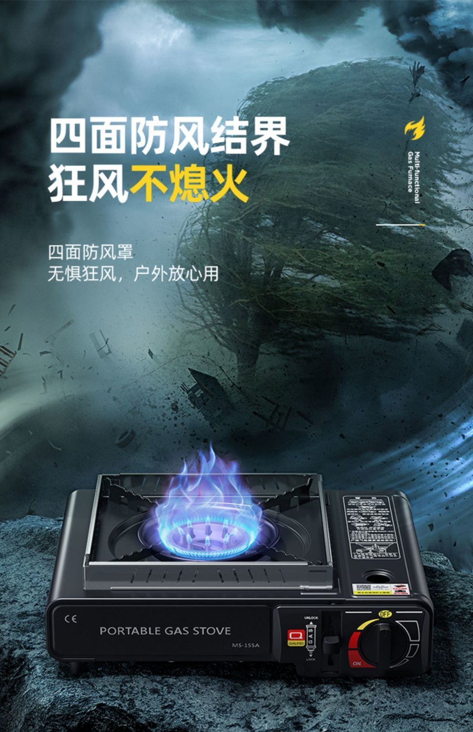 • ↑일회용 강력한 난로 + 여행가방 + 방풍링 + 가스 4병