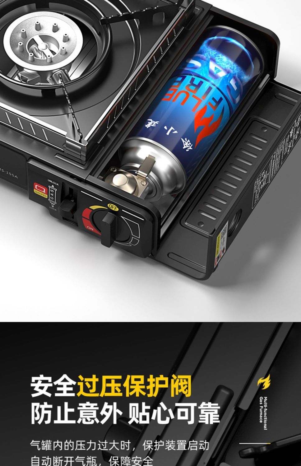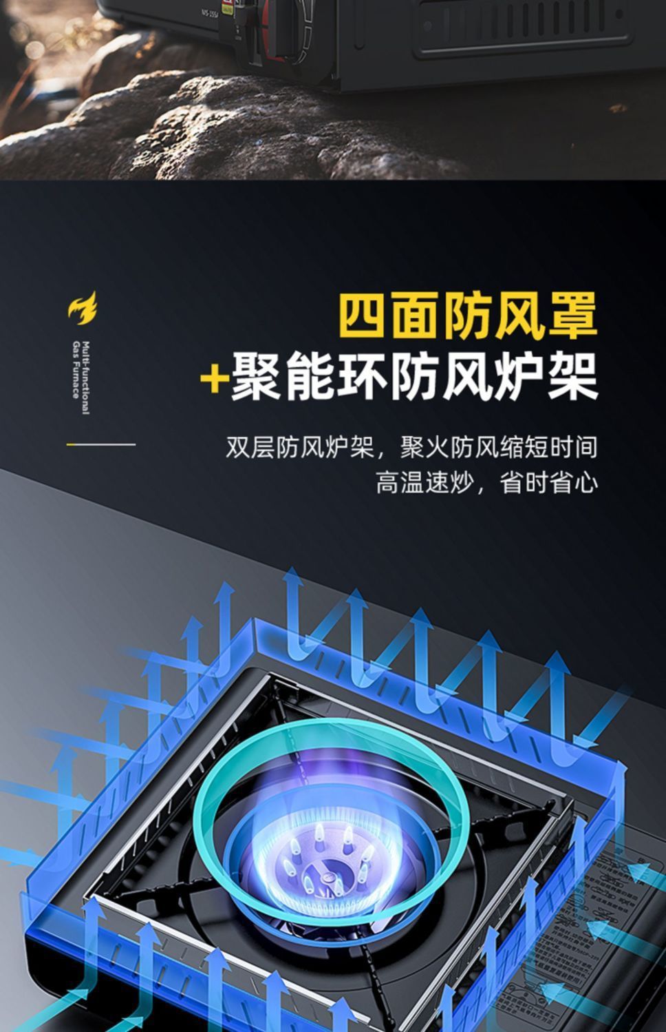 • ↑[수납용 상자 1개] 강력한 난로 + 방풍링 + 가스 4개