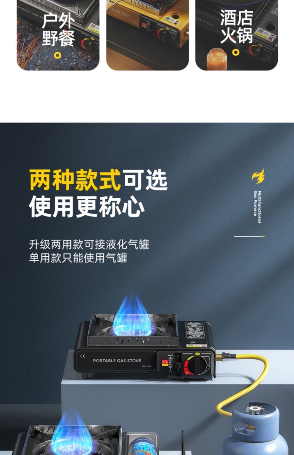 • ↑일회용 강력한 난로 + 여행가방 + 방풍링 + 가스 1병
