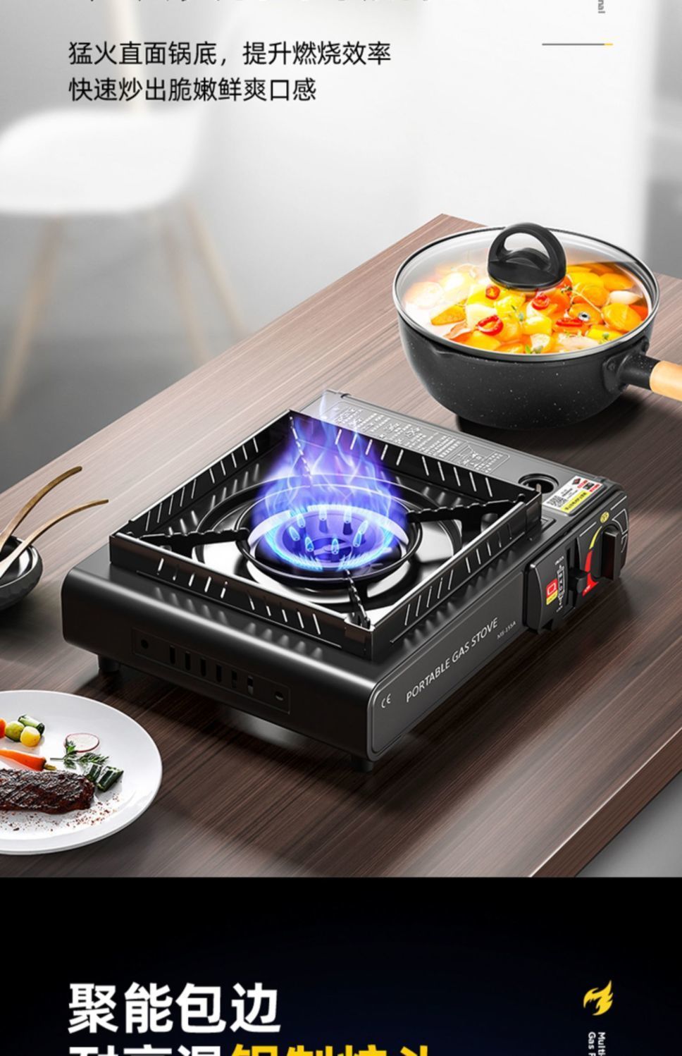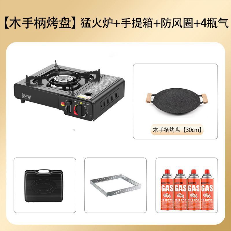• ↑[나무 손잡이 바베큐 접시] 강력한 난로 + 상자 + 고리 + 가스 4개