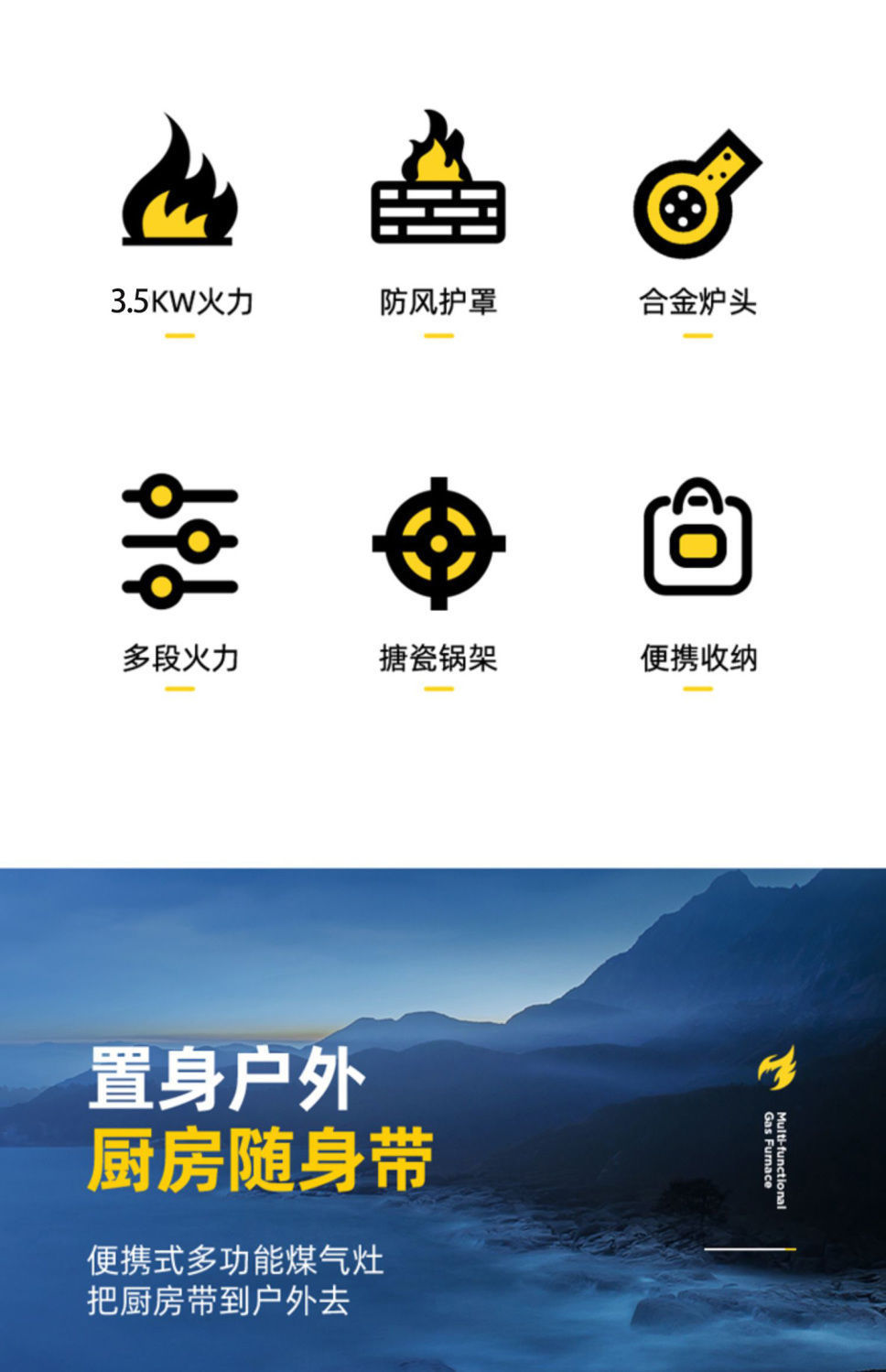 • ↑일회용 강력한 난로 + 여행가방 + 방풍링