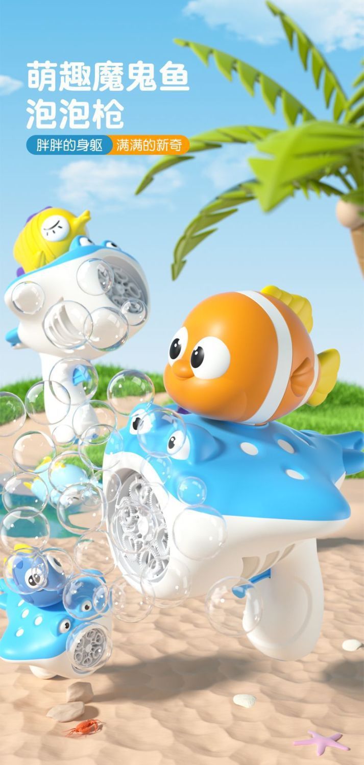 2025년 신형 흰동가리 버블 머신 자동 핸드헬드 버블 스틱 인기 전동 버블 건 해양 시리즈