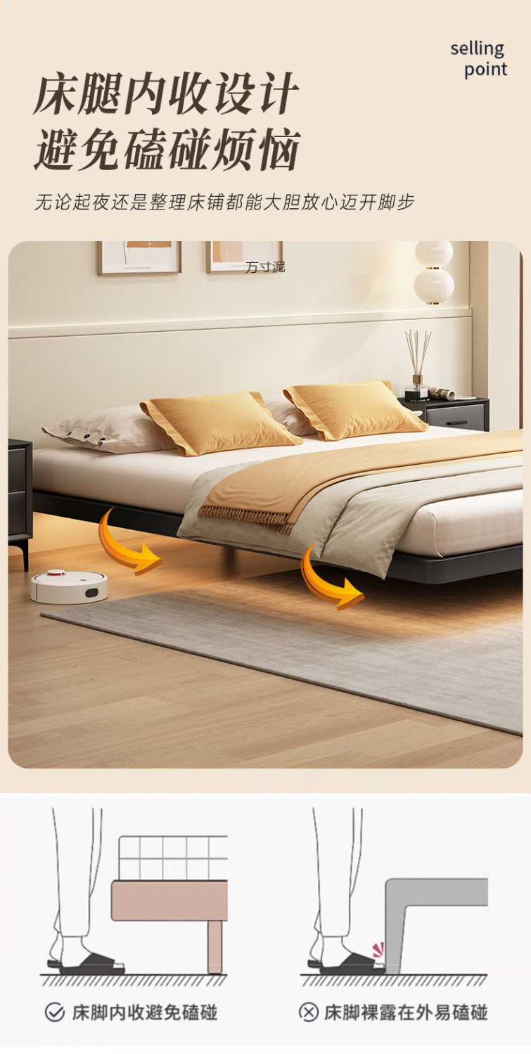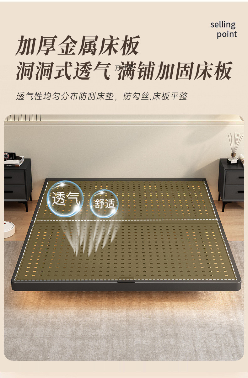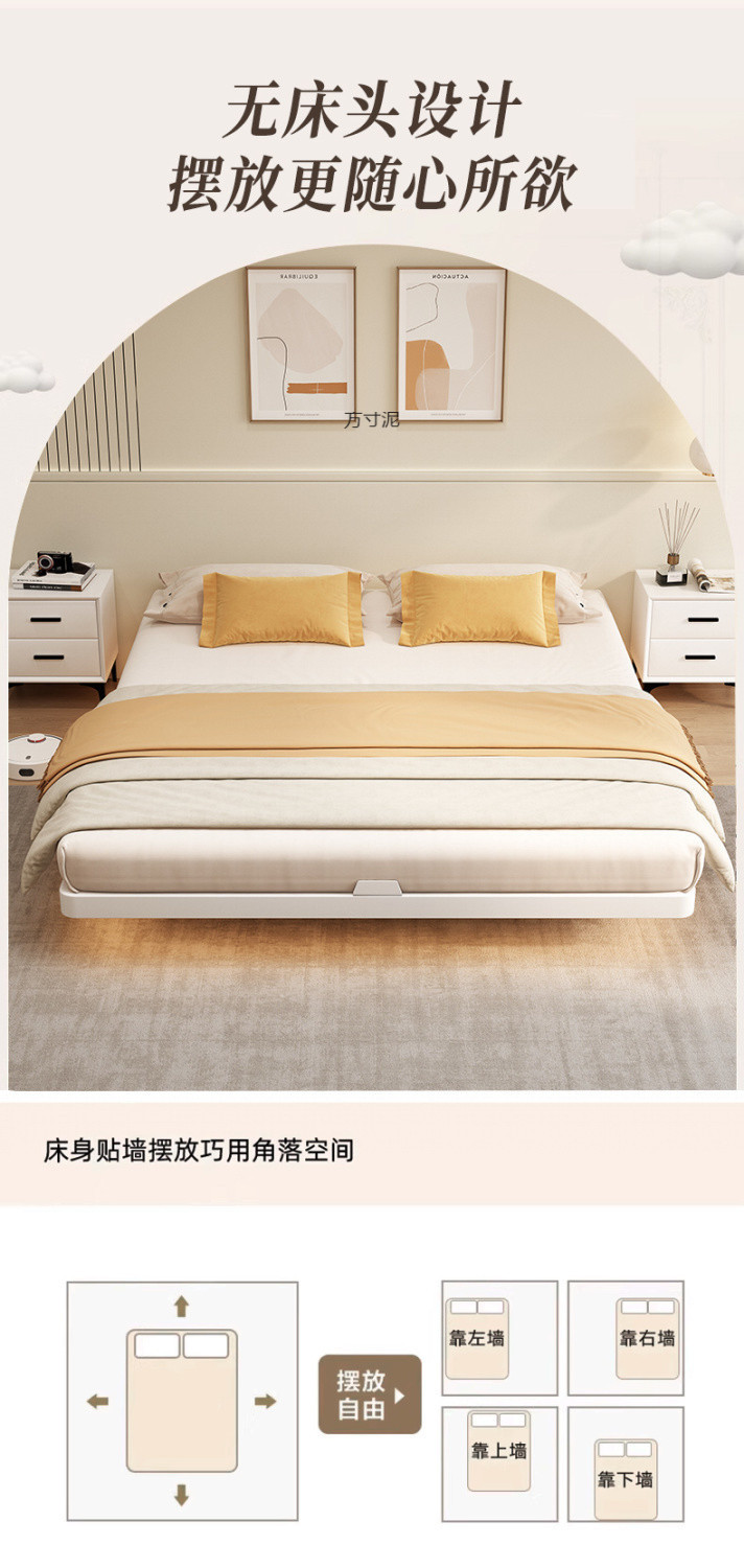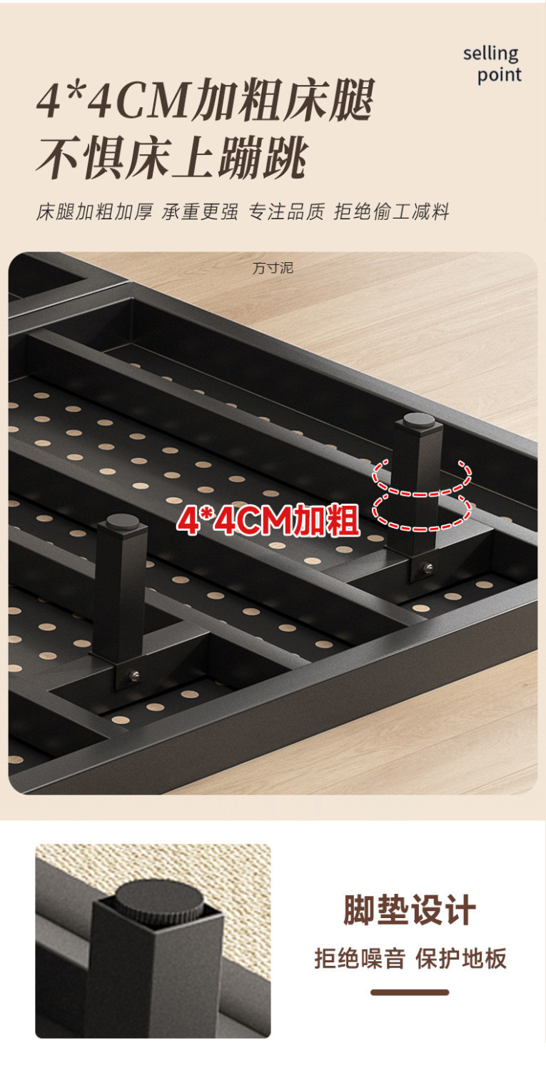헤드보드가 없는 공중에 뜨는 침대, 철제 프레임, 마스터 침실 더블 침대, 공중에 뜨는 암호화된 플레이트 철제 다다미 프레임 침대스토어 가기