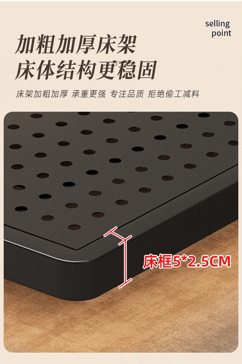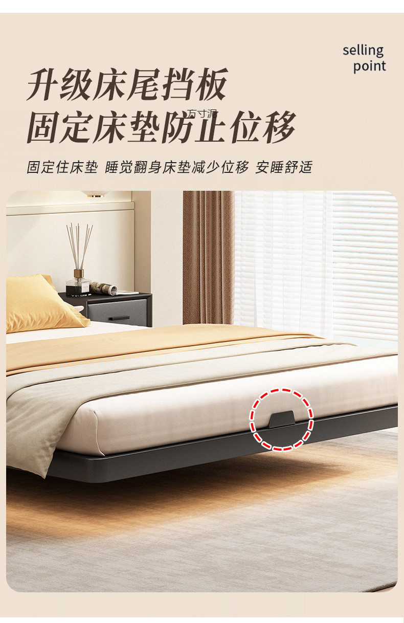 헤드보드가 없는 공중에 뜨는 침대, 철제 프레임, 마스터 침실 더블 침대, 공중에 뜨는 암호화된 플레이트 철제 다다미 프레임 침대