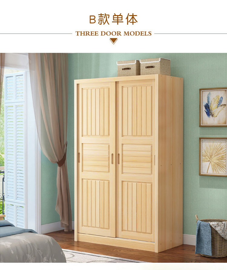 모든 단단한 소나무 슬라이딩 도어 옷장 간단한 통나무 성인 침실 2 도어 어린이 수납 옷장 조립스토어 가기