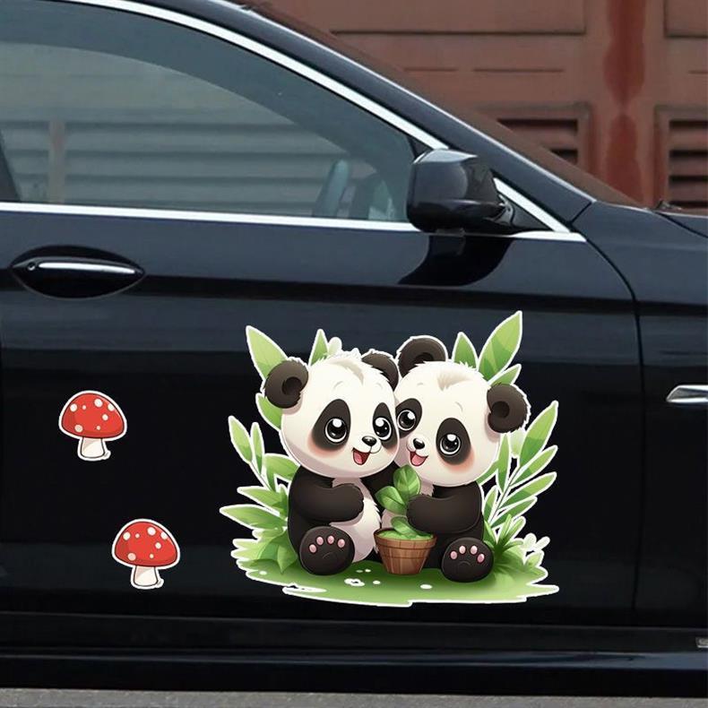 녹색 잎이 있는 귀여운 팬더 방수 자동차 스티커, 창의적인 만화 스크래치 차단 스티커, 자동차 도어 범퍼 스티커