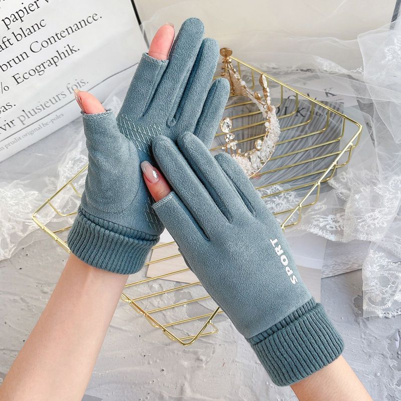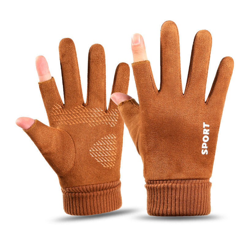 남성용 및 여성용 겨울 장갑, 보온, 방한, 방풍, 벨벳, 터치 스크린, 야외 오토바이 타고 운전, 테이크아웃, 두 손가락 누출스토어 가기