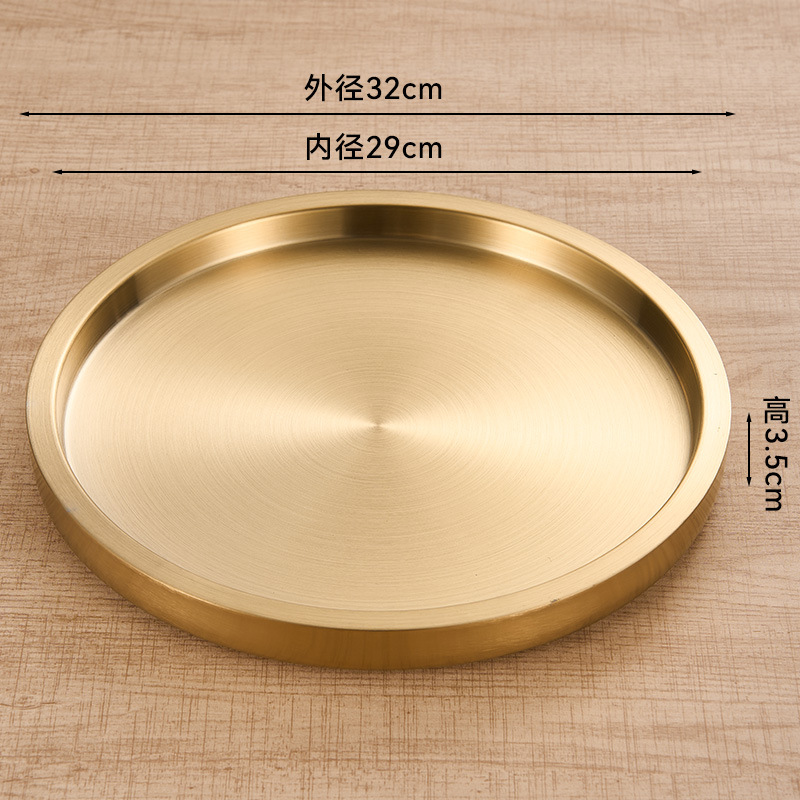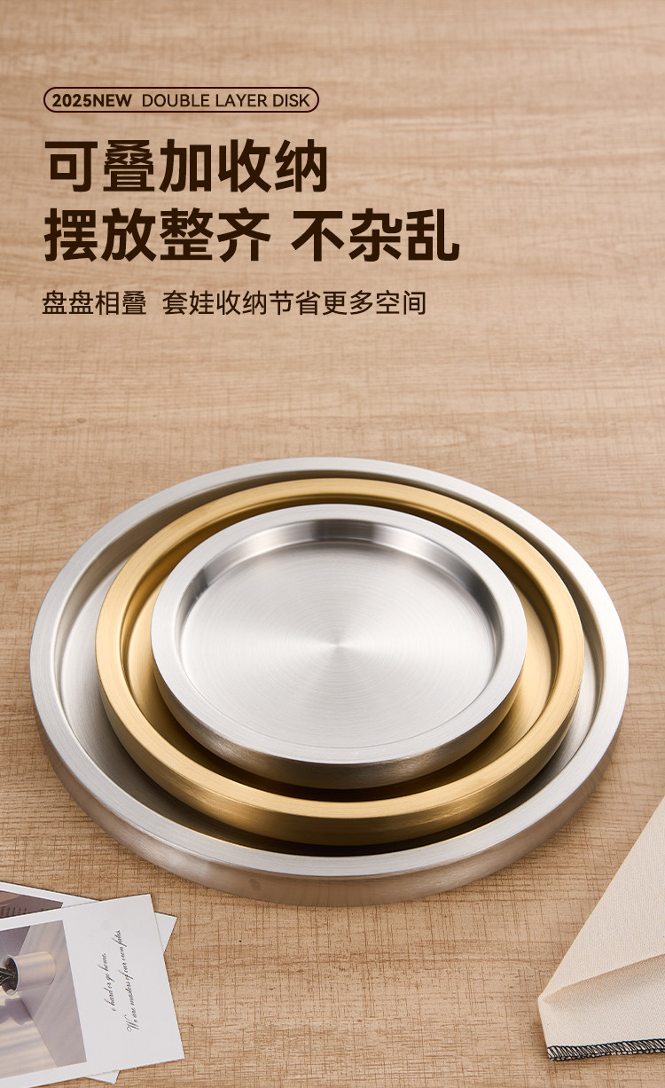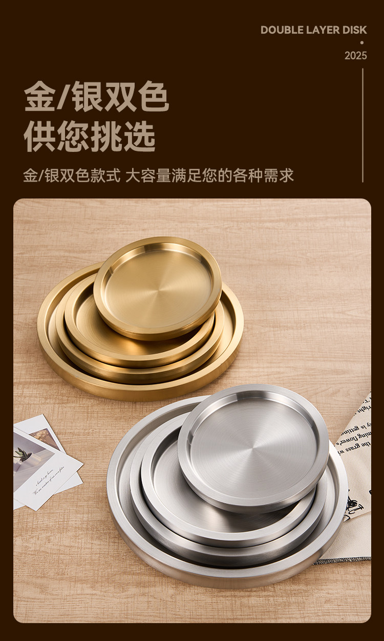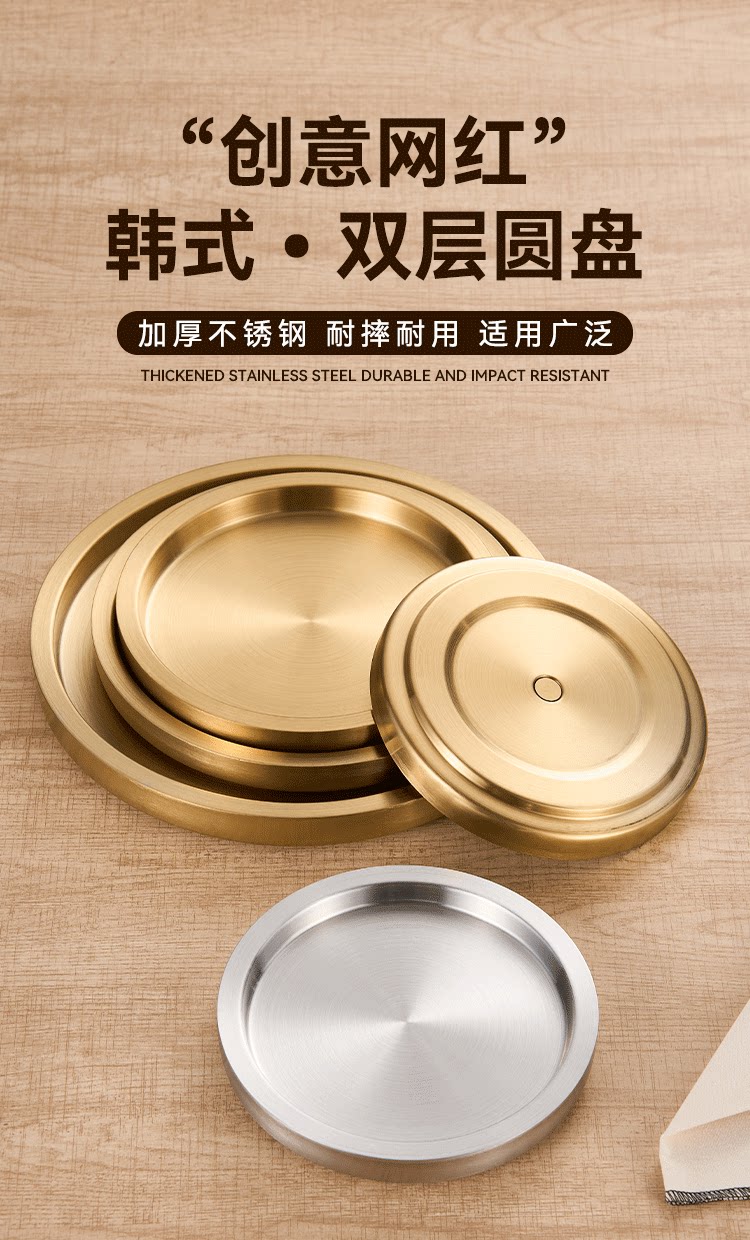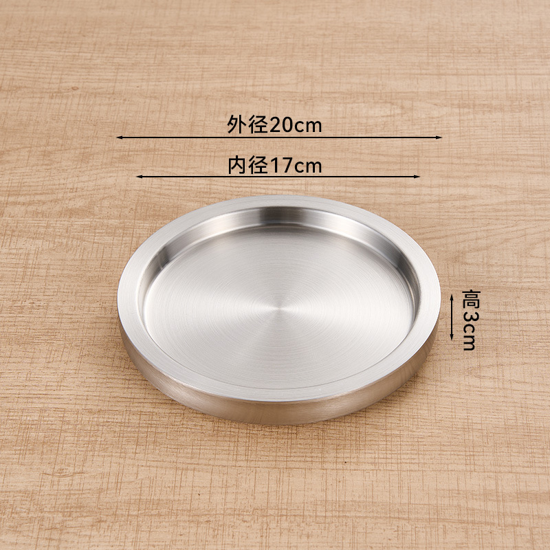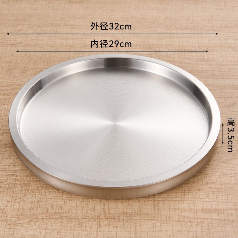 스테인레스 스틸 원형 접시 두꺼운 이중층 접시 상업용 전골 및 바베큐 레스토랑 쇠고기 트레이 플랫 트레이 스테이크 서양 음식 접시스토어 가기