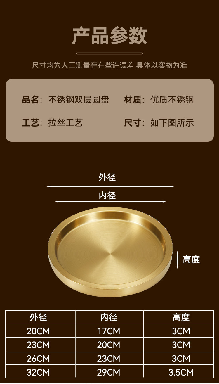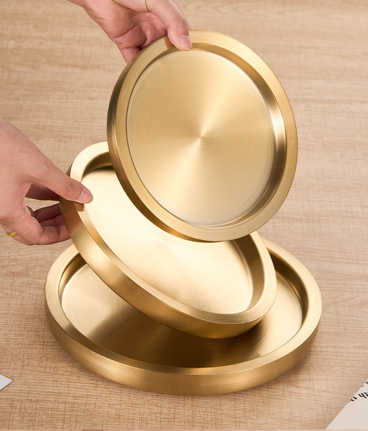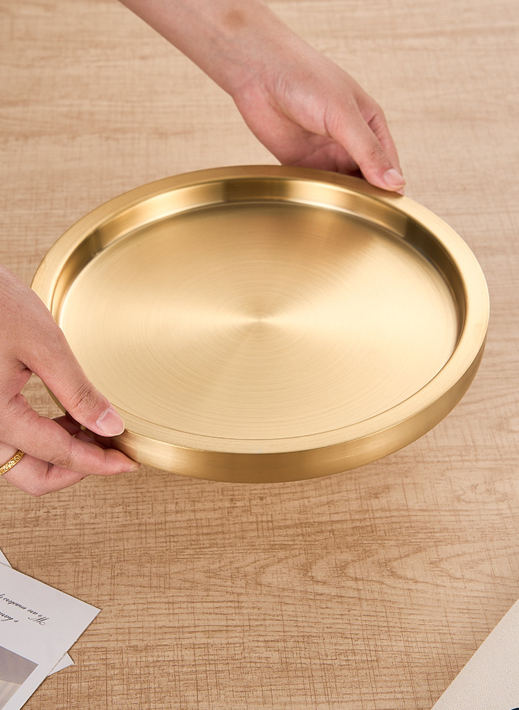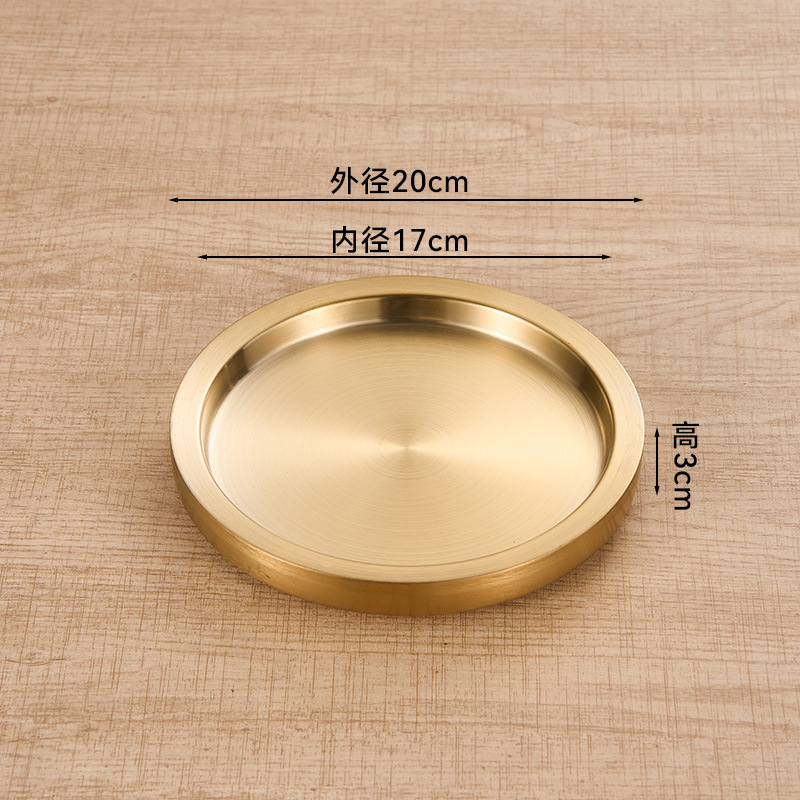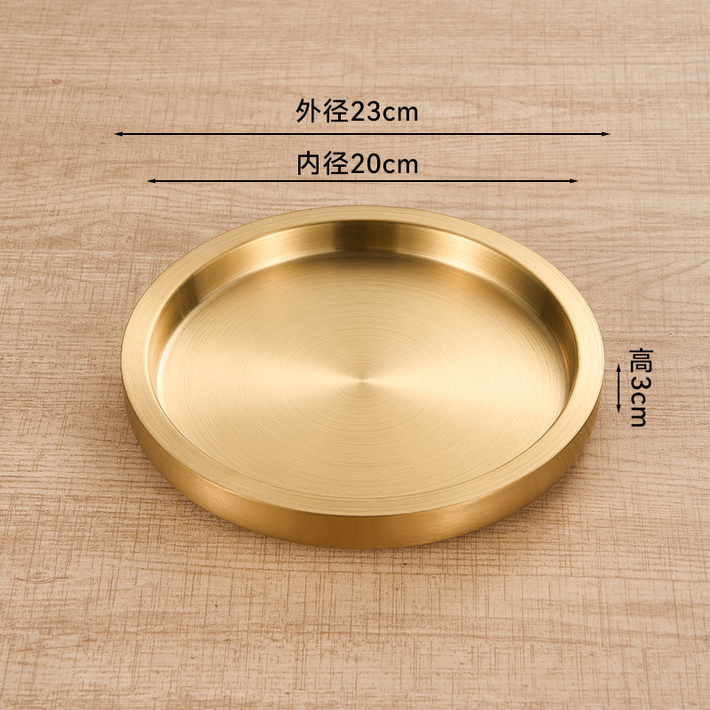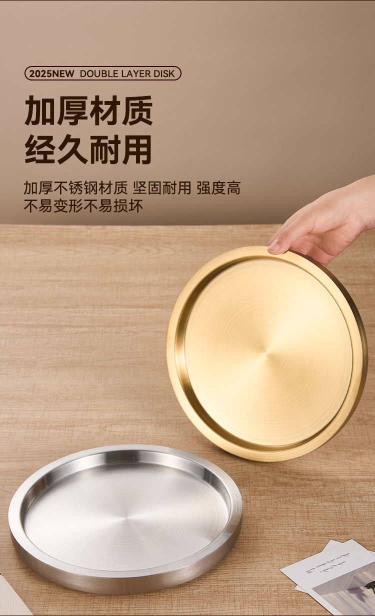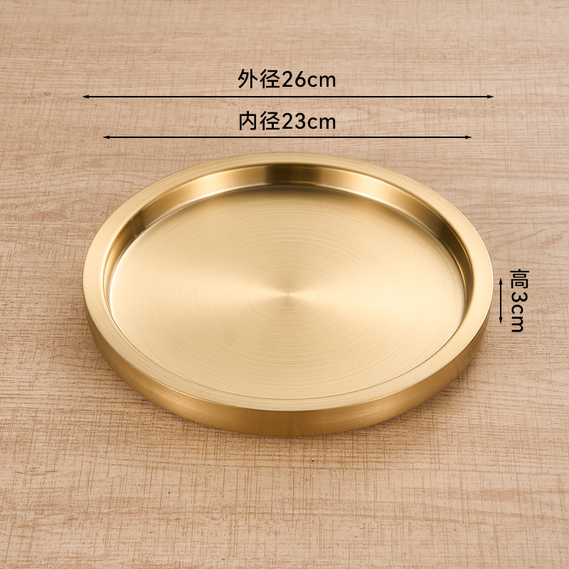 스테인레스 스틸 원형 접시 두꺼운 이중층 접시 상업용 전골 및 바베큐 레스토랑 쇠고기 트레이 플랫 트레이 스테이크 서양 음식 접시스토어 가기
