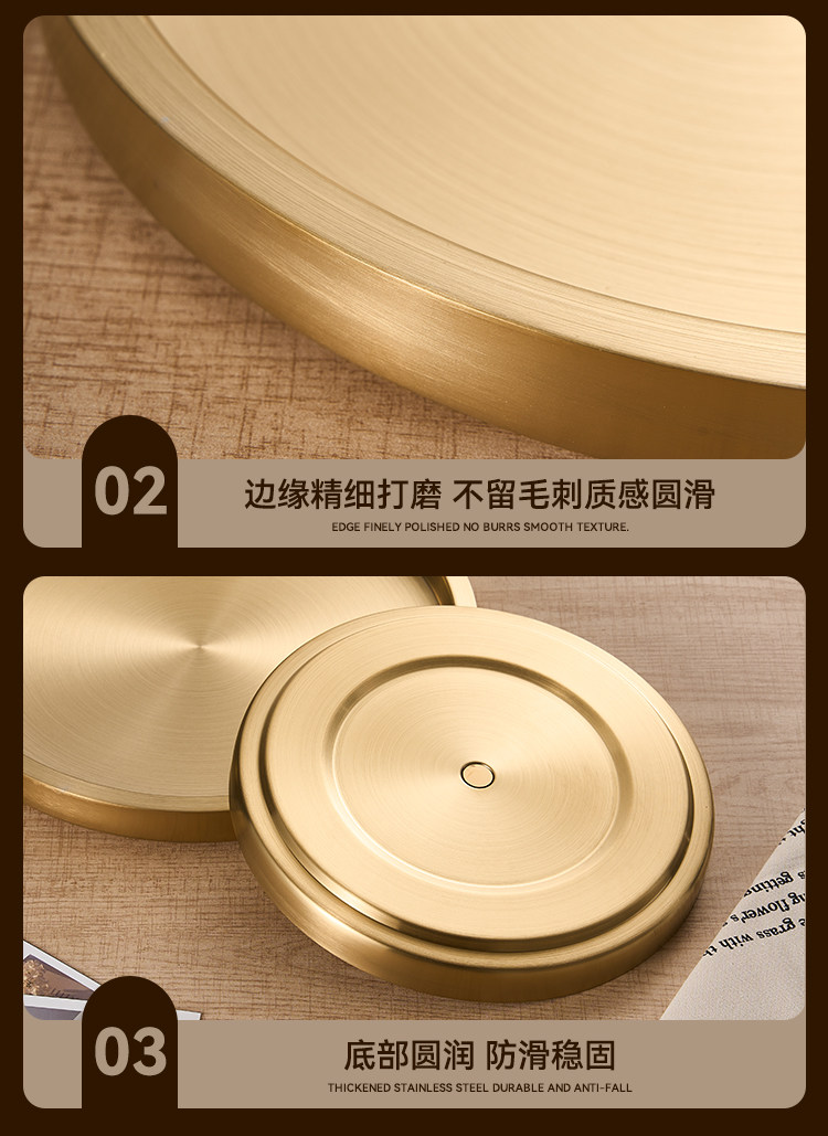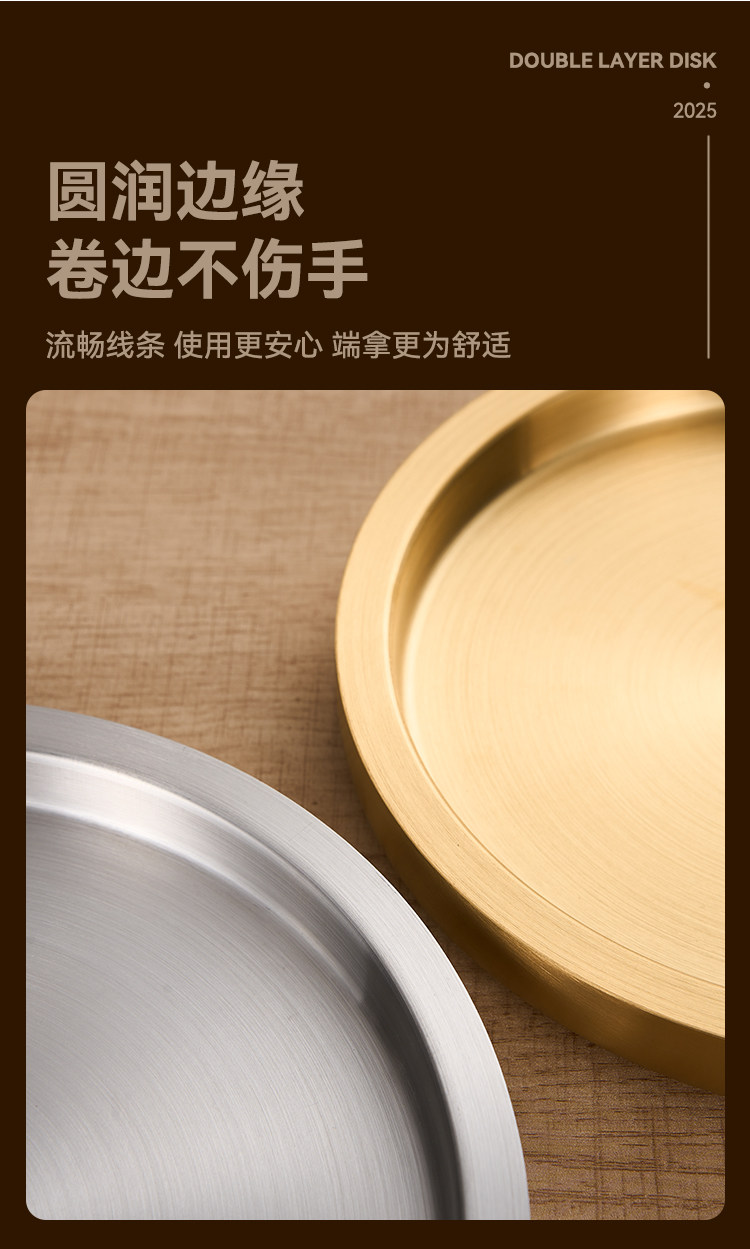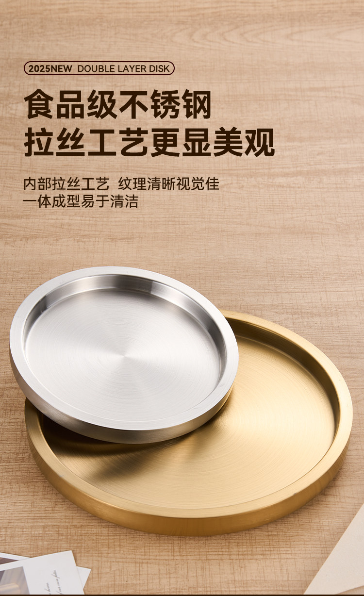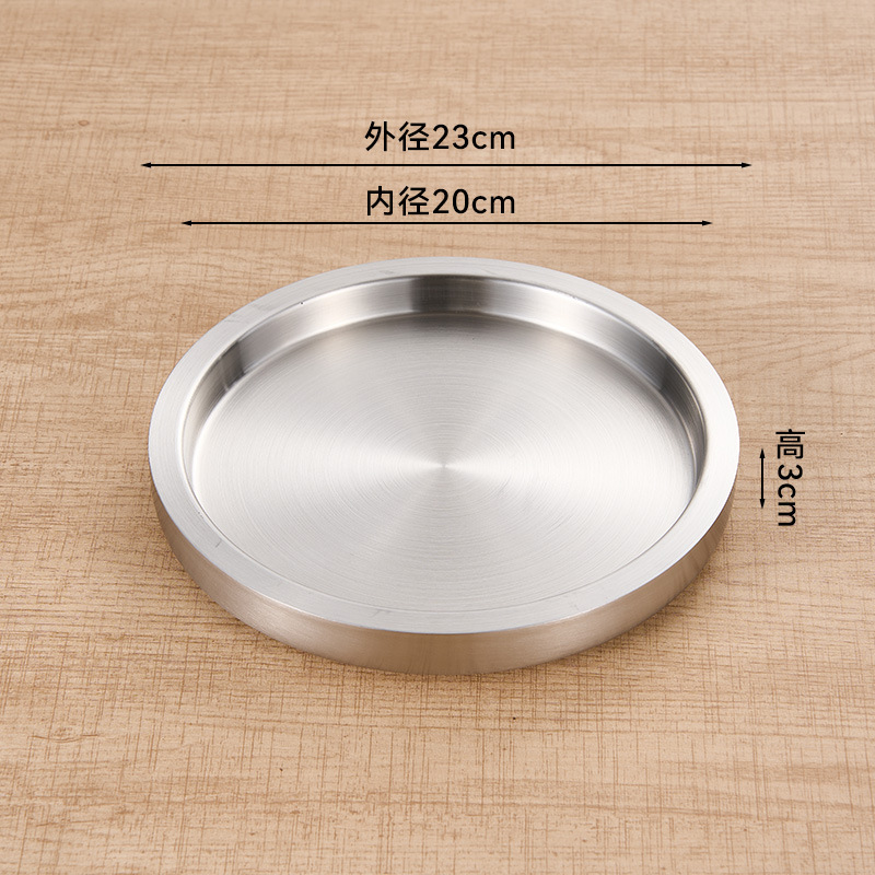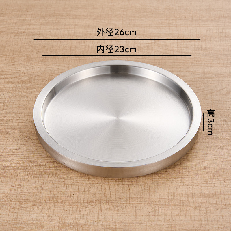 스테인레스 스틸 원형 접시 두꺼운 이중층 접시 상업용 전골 및 바베큐 레스토랑 쇠고기 트레이 플랫 트레이 스테이크 서양 음식 접시