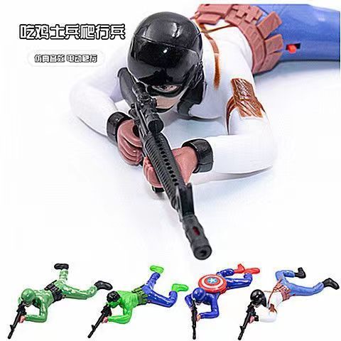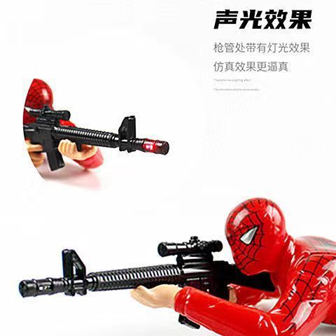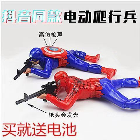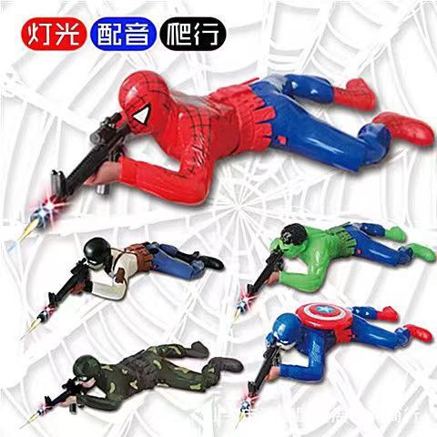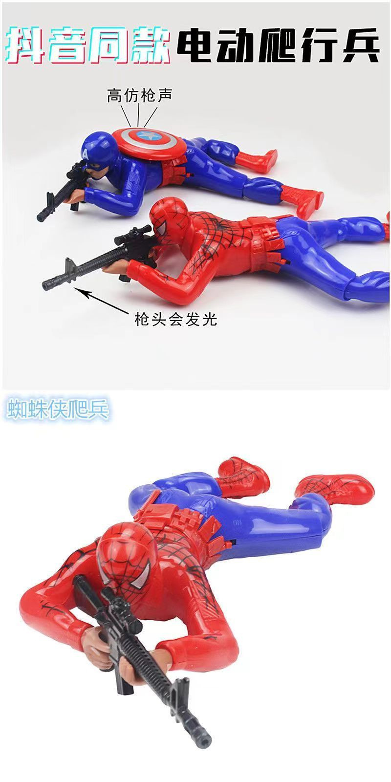 인터넷 연예인 전기 크롤링 위장 군인 스파이더맨 캡틴 아메리카 슈퍼맨 소리와 닭 장난감을 먹는 동일한 스타일스토어 가기