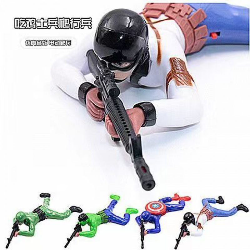 인터넷 연예인 전기 크롤링 위장 군인 스파이더맨 캡틴 아메리카 슈퍼맨 소리와 닭 장난감을 먹는 동일한 스타일