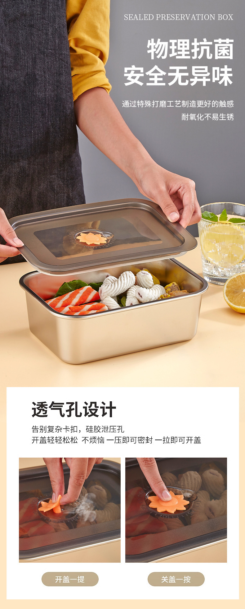 316 스테인레스 스틸 크리스퍼 야외 피크닉 상자 밀봉 냉장고 보관 상자 도시락 상자 두꺼운 토스트 상자 오븐 상자스토어 가기