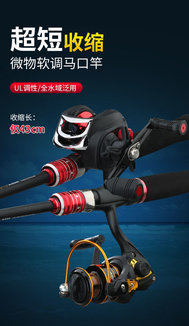 슈퍼 소프트 마우스 로드 세트 UL 조절식 텔레스코픽 루어 로드 초단거리 화이트 스트립 마이크로 로드 건 핸들 워터 드롭 휠 뗏목 로드 세트