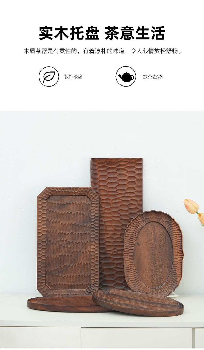 호두나무 원목 수제 양각 트레이 원목 접시 중국식 가정용 과일 통나무 차 트레이 특별한 모양의 차 트레이스토어 가기