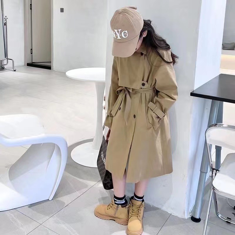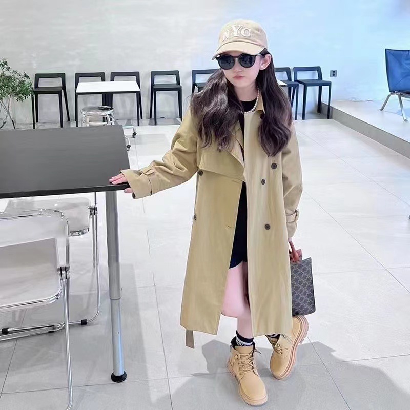 여아용 윈드 브레이커 재킷 2025 새로운 가을 의류 아동용 중간 길이 영국 스타일 큰 어린이 소녀 봄, 가을 유행 아동복